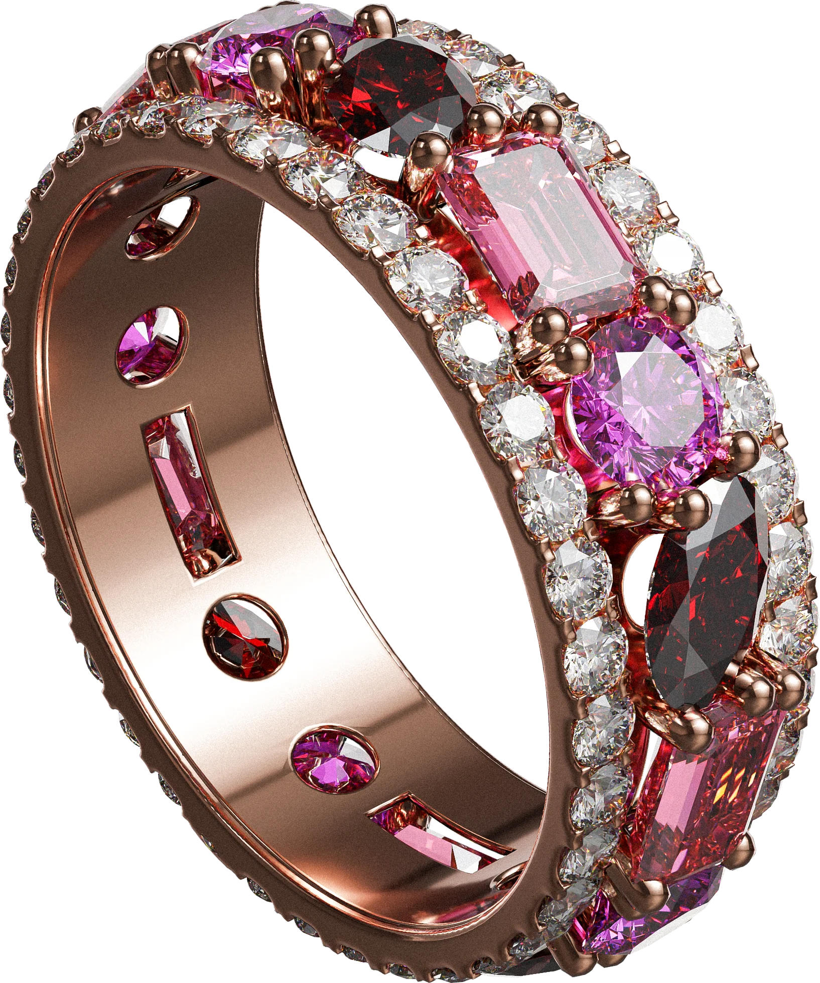 Decide which stones you would like to be set in your ring, choose the type, colour, size and shape.