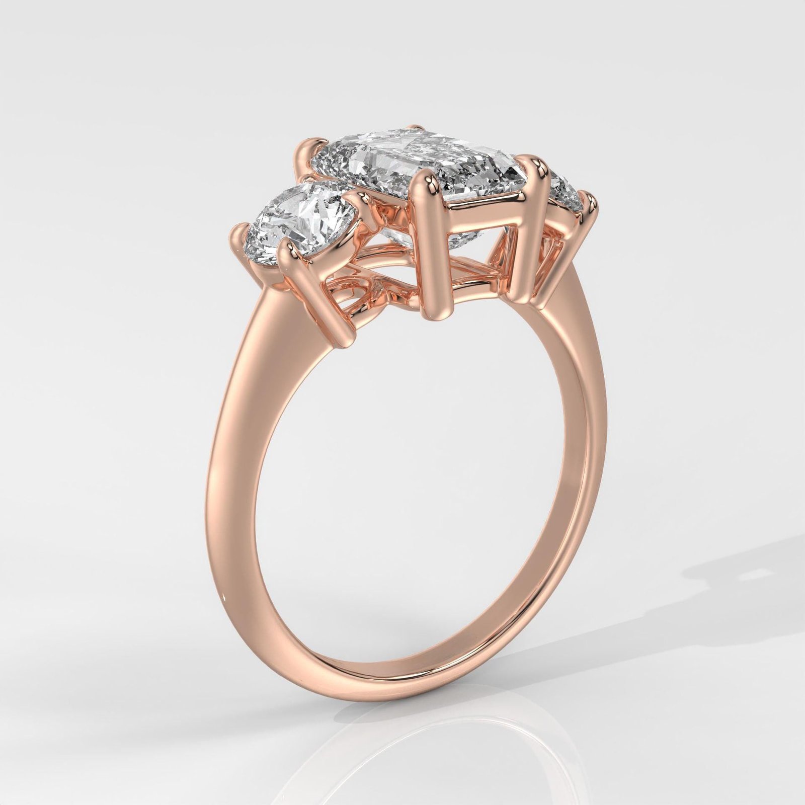 The emerald cut symbolizes clarity, strength, and timeless love, while the three-stone setting represents the past, present, and future of your relationship. Crafted with ethically sourced lab-grown diamonds, this ring combines luxury with sustainability, making it an ideal choice for conscious buyers.