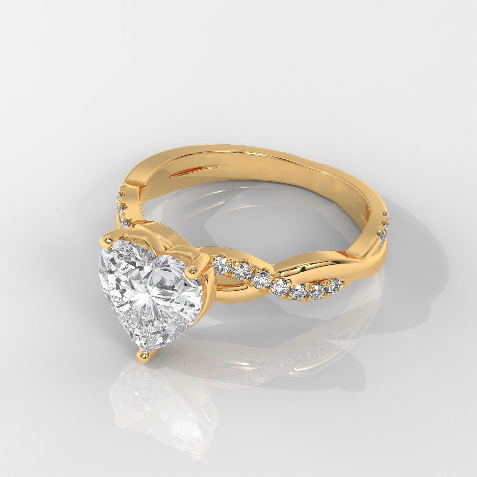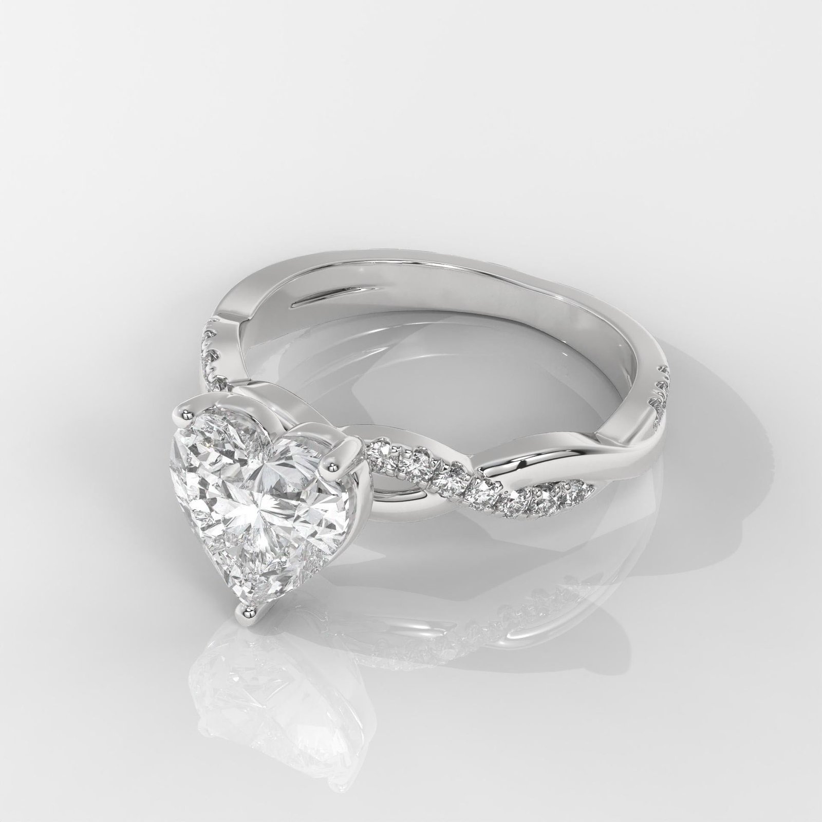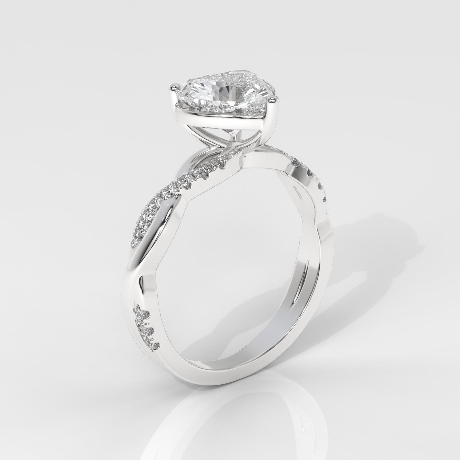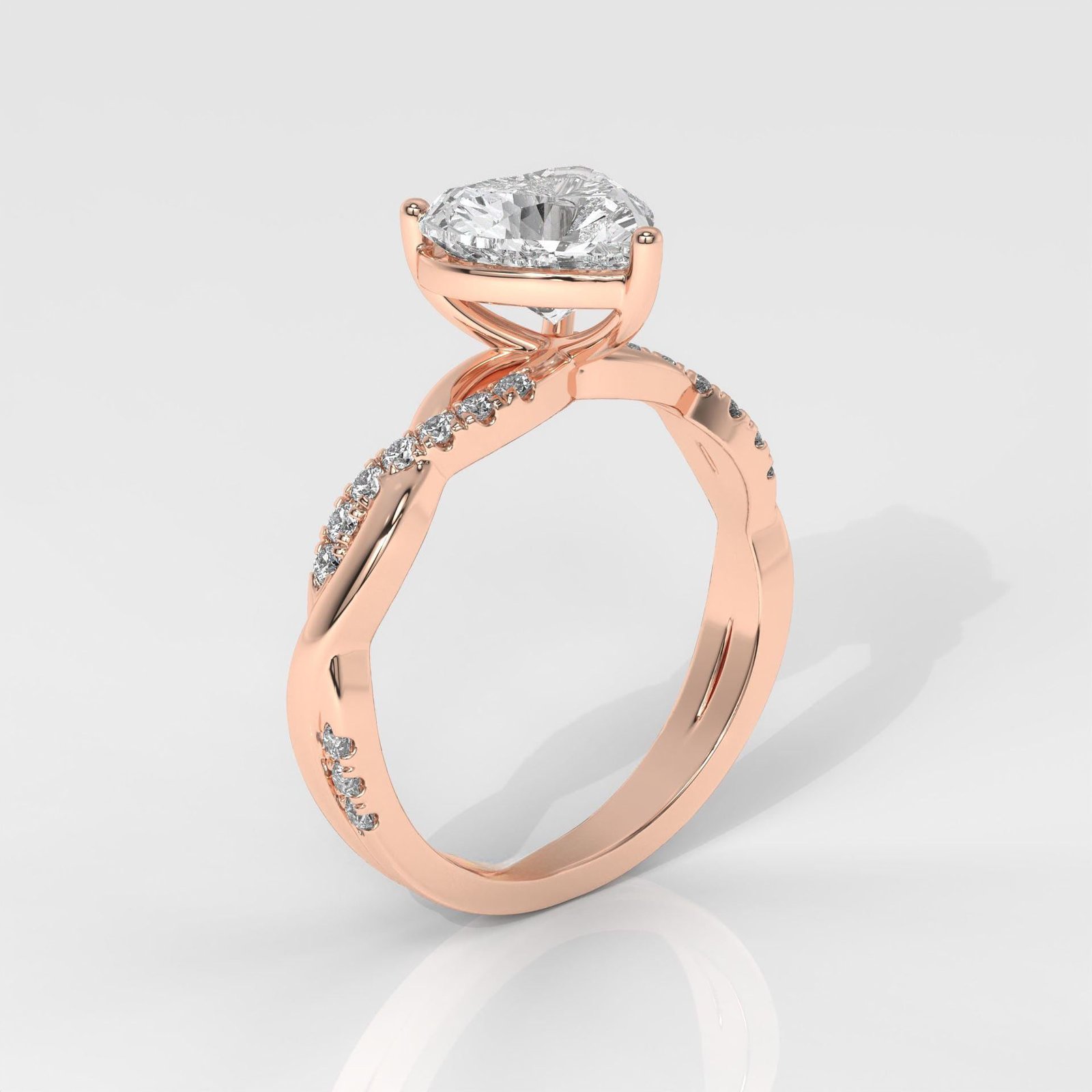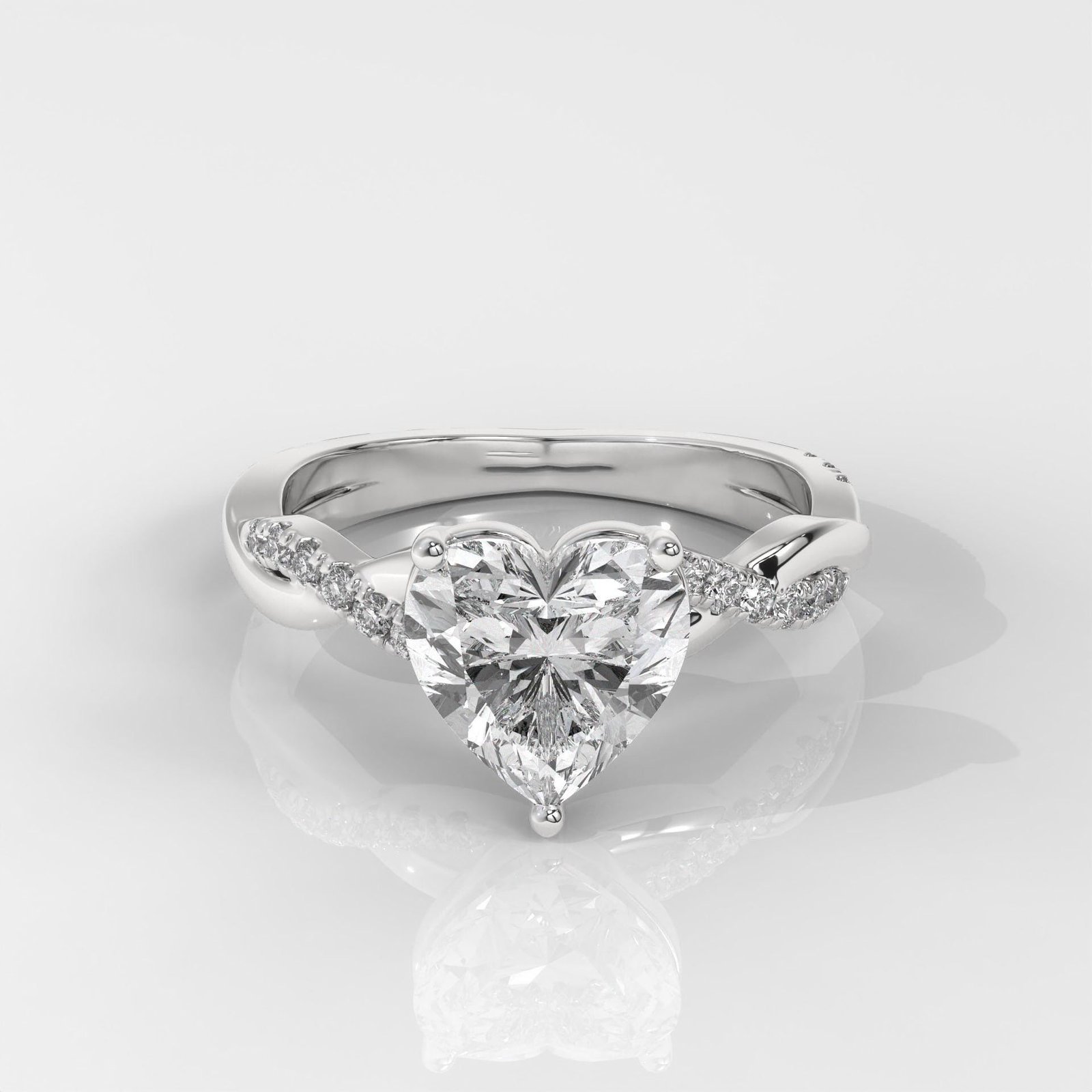 The heart shape is the ultimate symbol of love, making this ring a perfect choice for proposals, anniversaries, or Valentine?s Day. The lab-grown diamonds ensure eco-friendly luxury without compromise on brilliance and quality. The twist design with pav? stones adds sophistication and makes the center diamond stand out even more.