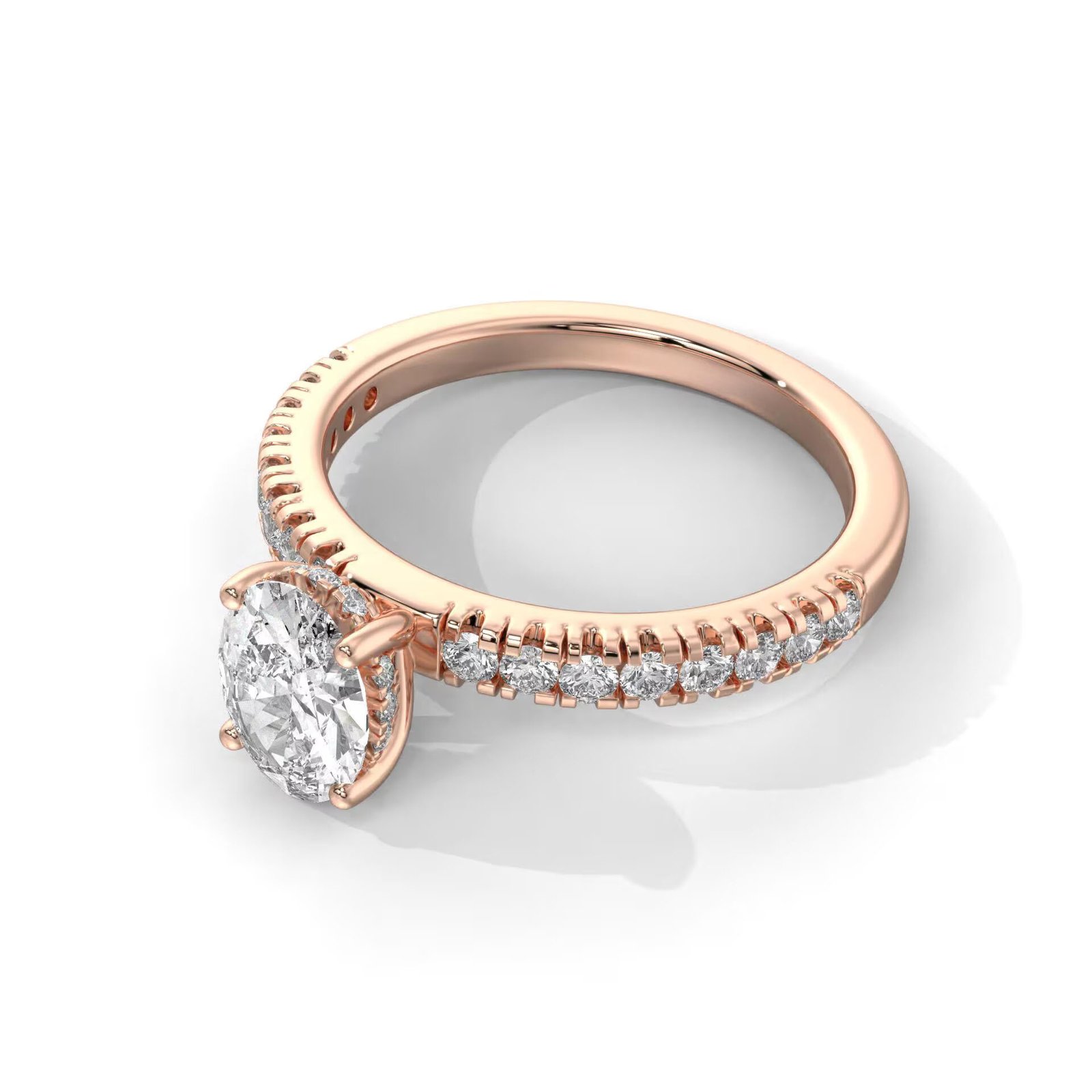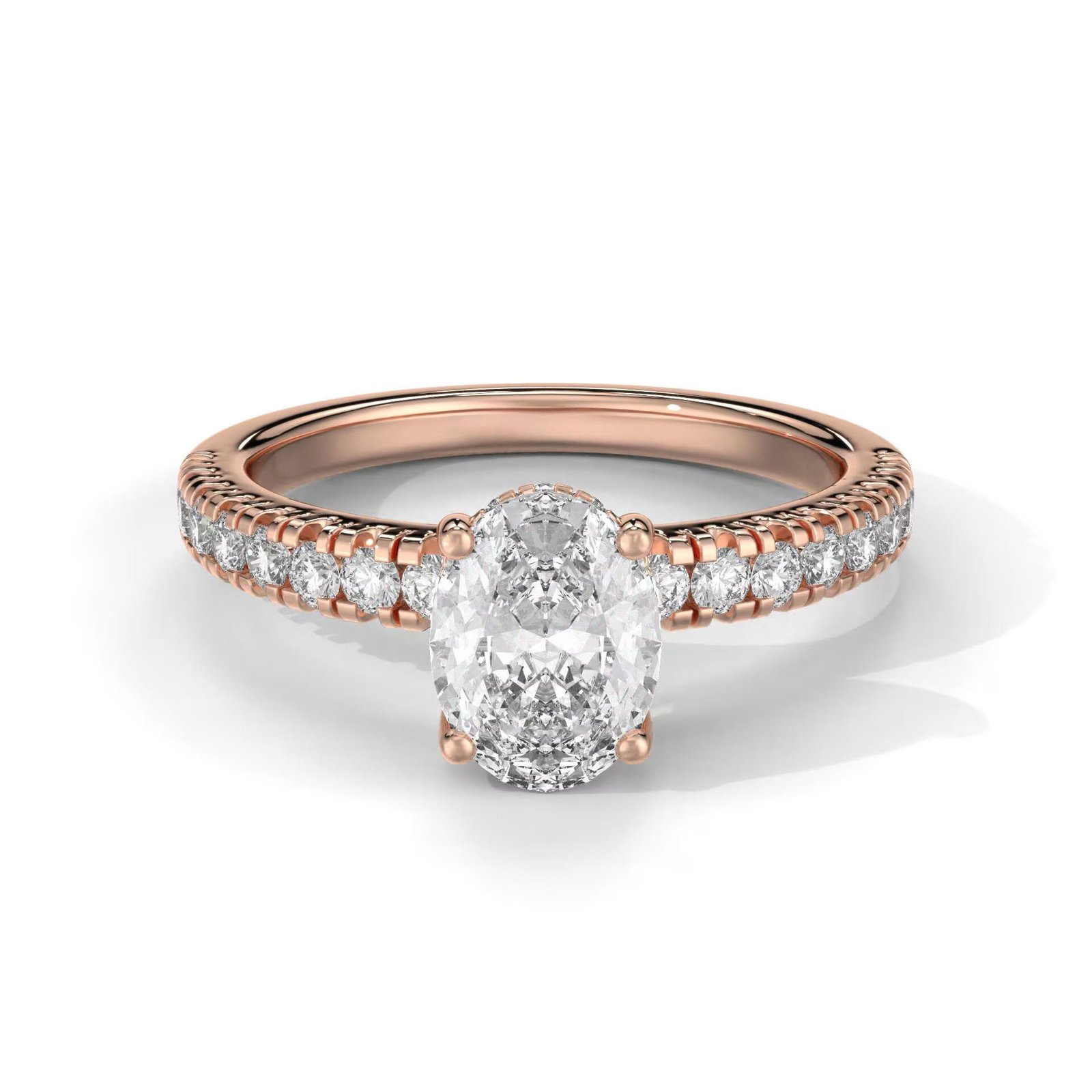 14K Gold Oval Brilliant Lab Grown Diamond Engagement Ring with Hidden Halo. IGI Certified, DEF color, VVS–VS clarity. Elegant, timeless, and sustainably crafted.