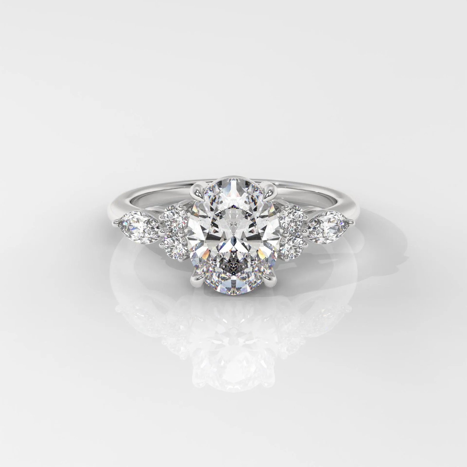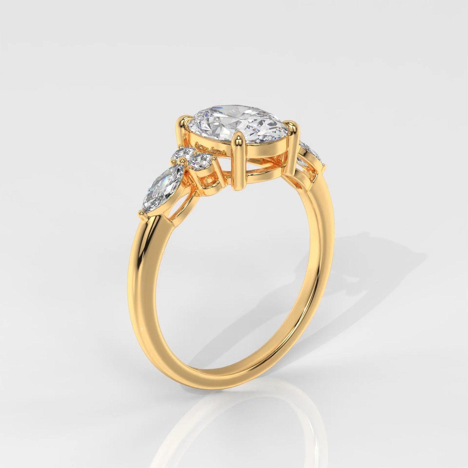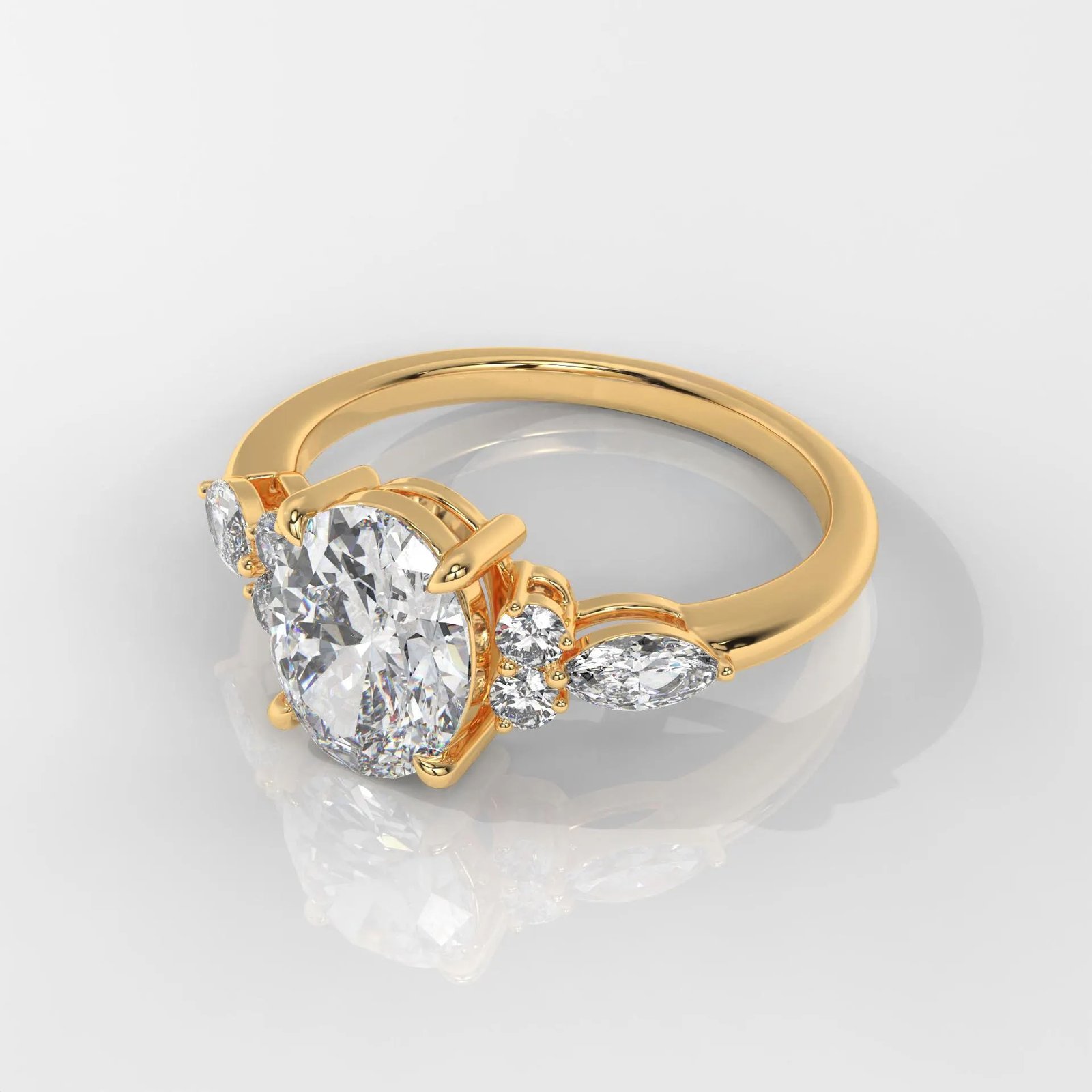 Make your moment unforgettable with this exquisite 14K Gold Lab Grown Diamond Engagement Ring, showcasing a stunning Oval Brilliant IGI-Certified Diamond at its center. Designed for those who seek both luxury and sustainability, this handcrafted ring features shimmering Round and Marquise Brilliant side stones, all lab-grown and selected for their exceptional clarity and color.