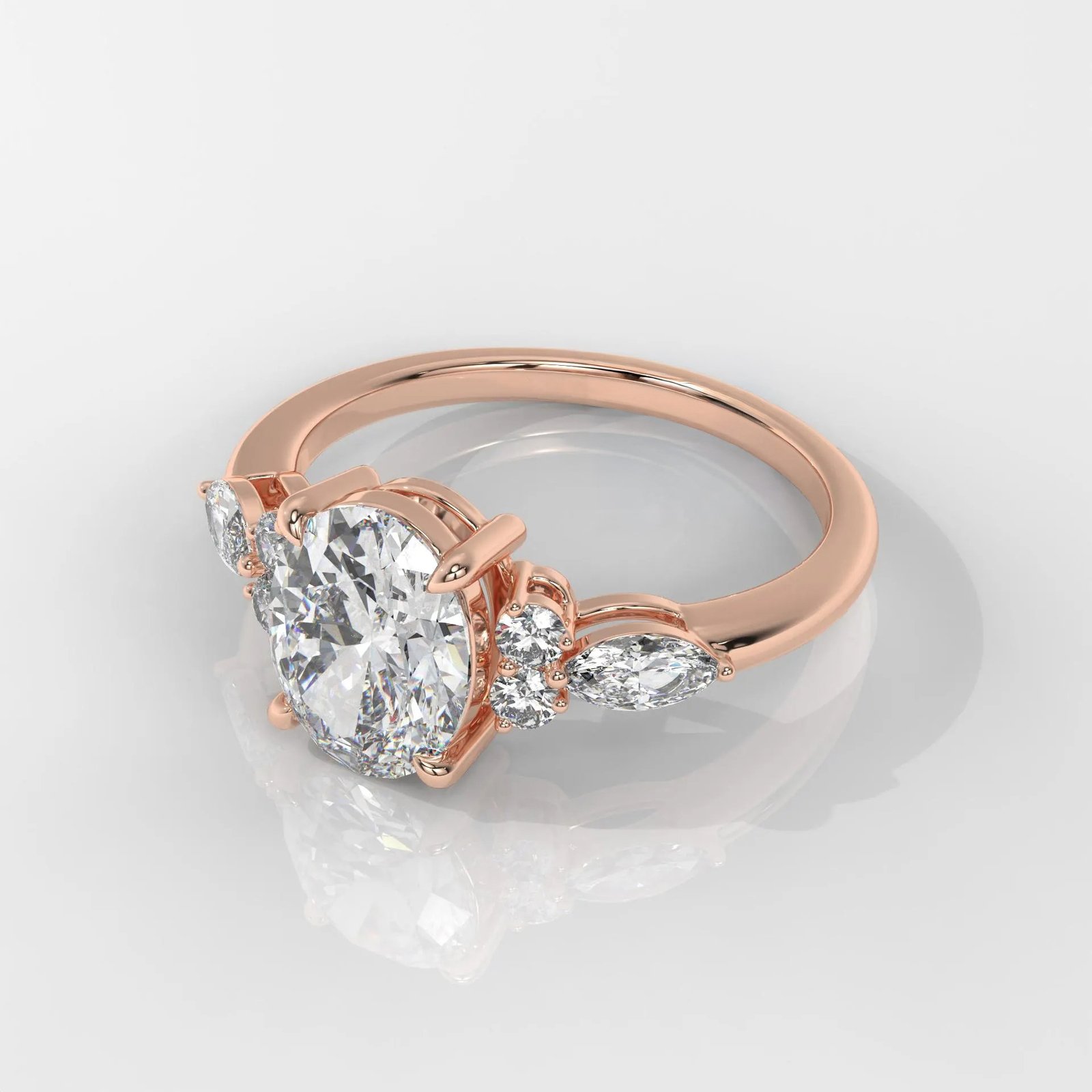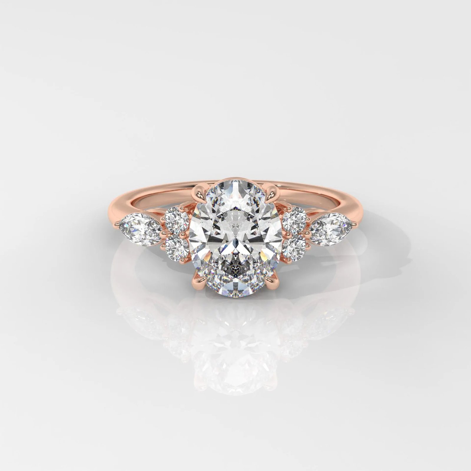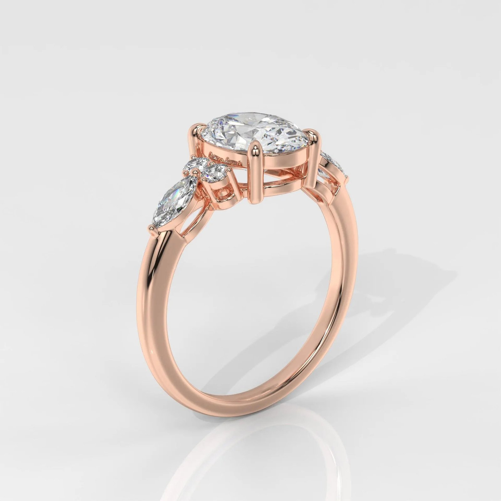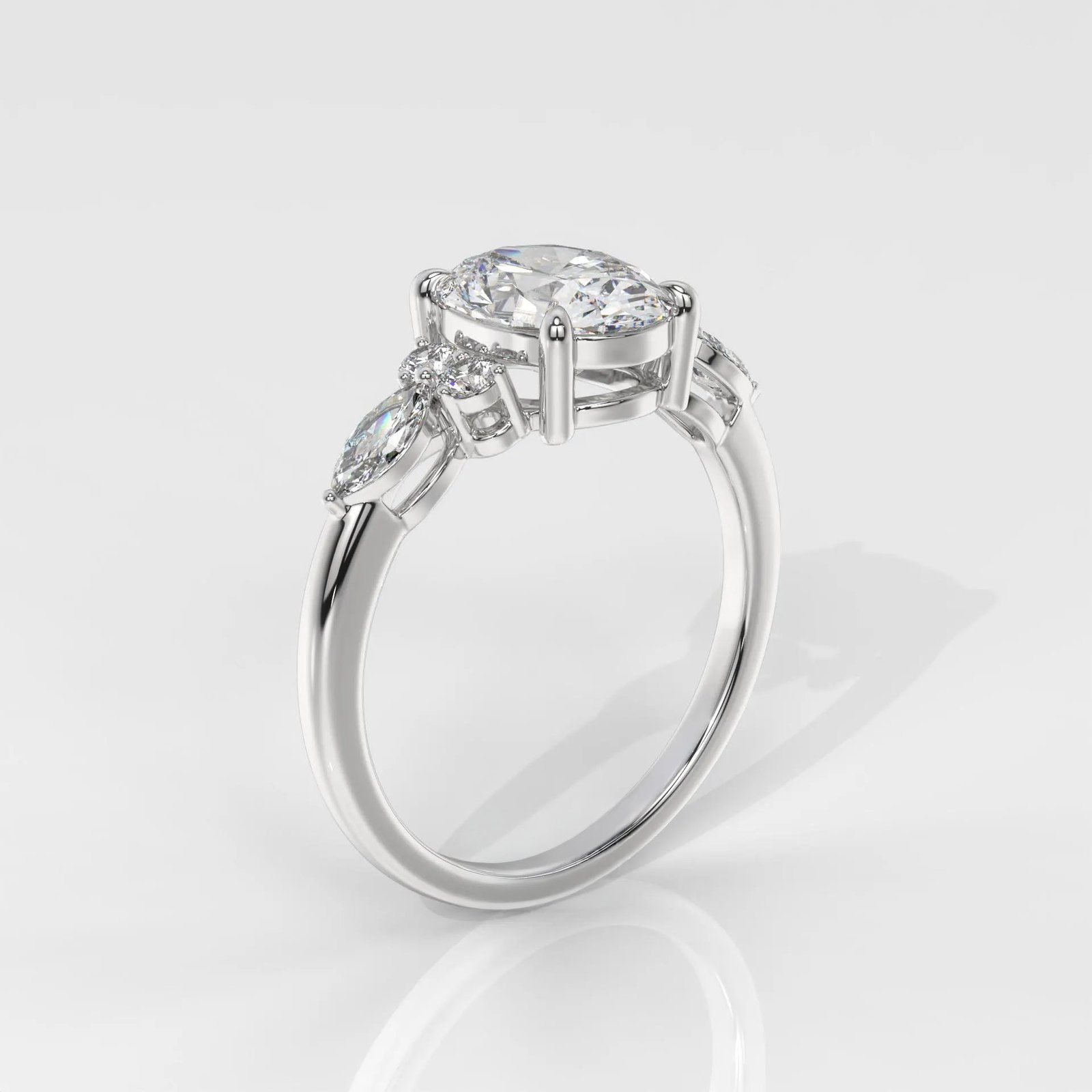Make your moment unforgettable with this exquisite 14K Gold Lab Grown Diamond Engagement Ring, showcasing a stunning Oval Brilliant IGI-Certified Diamond at its center. Designed for those who seek both luxury and sustainability, this handcrafted ring features shimmering Round and Marquise Brilliant side stones, all lab-grown and selected for their exceptional clarity and color.