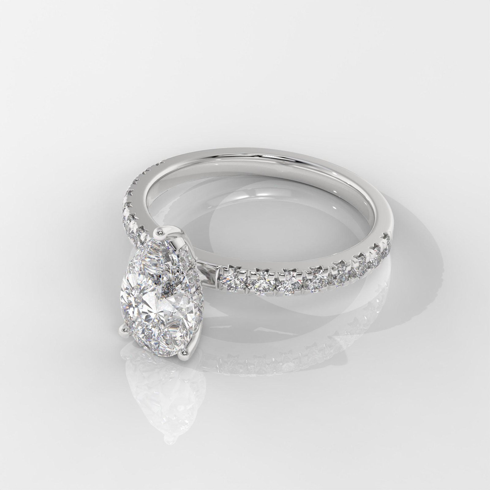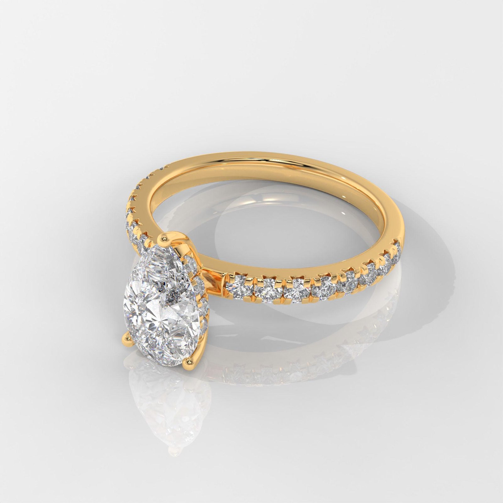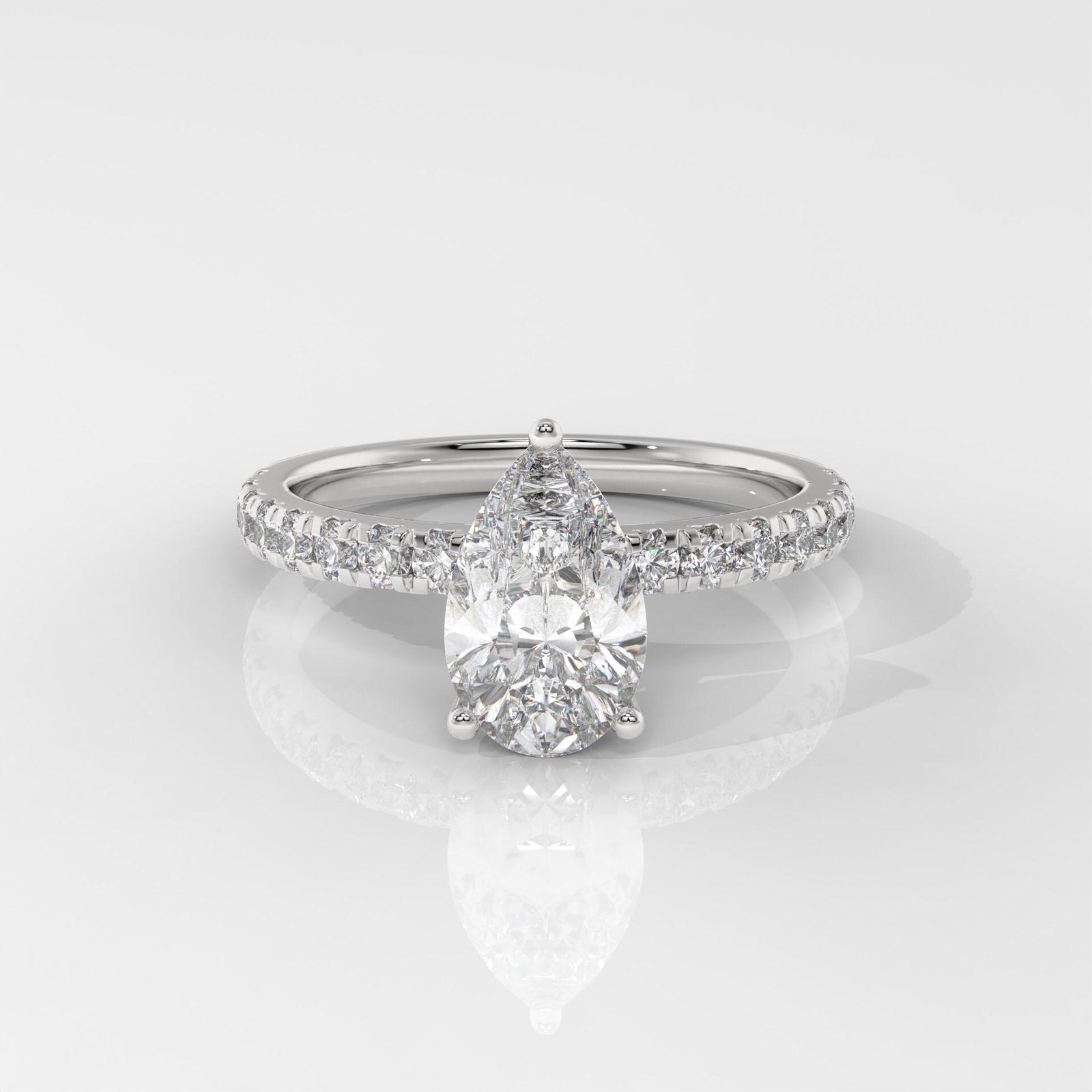 A graceful Pear-Shaped Diamond Ring by OTP Jewelry, featuring a certified lab-grown pear brilliant diamond with a sparkling pavé side stone band. Available in 14K White, Yellow, or Rose Gold.