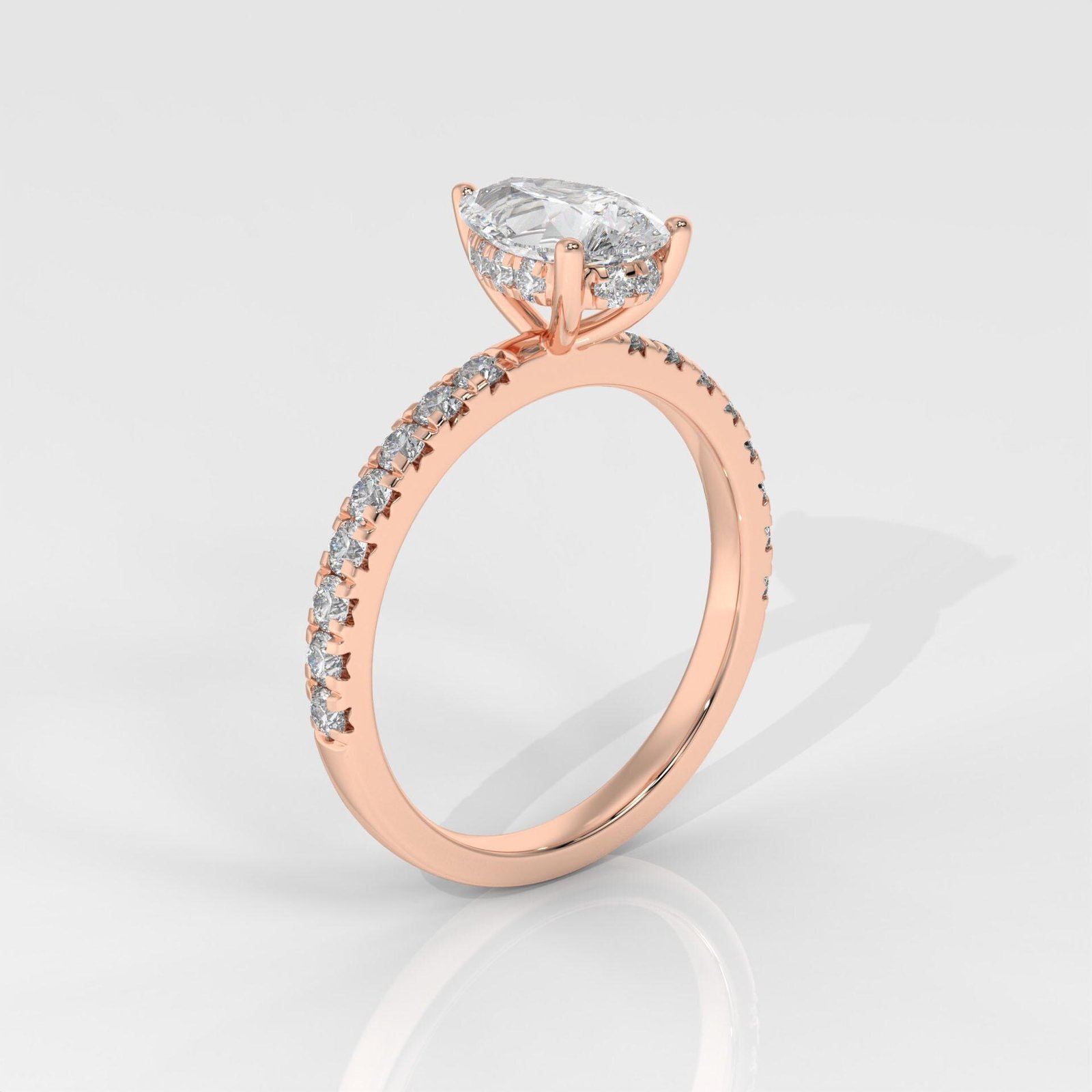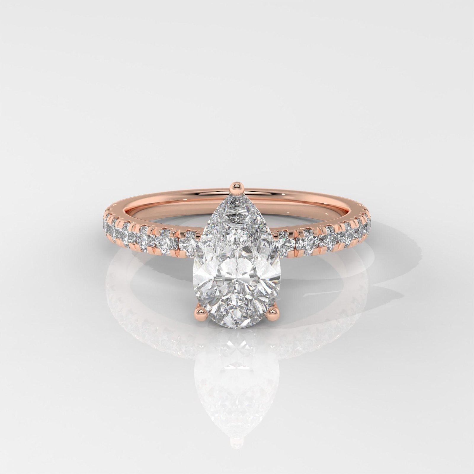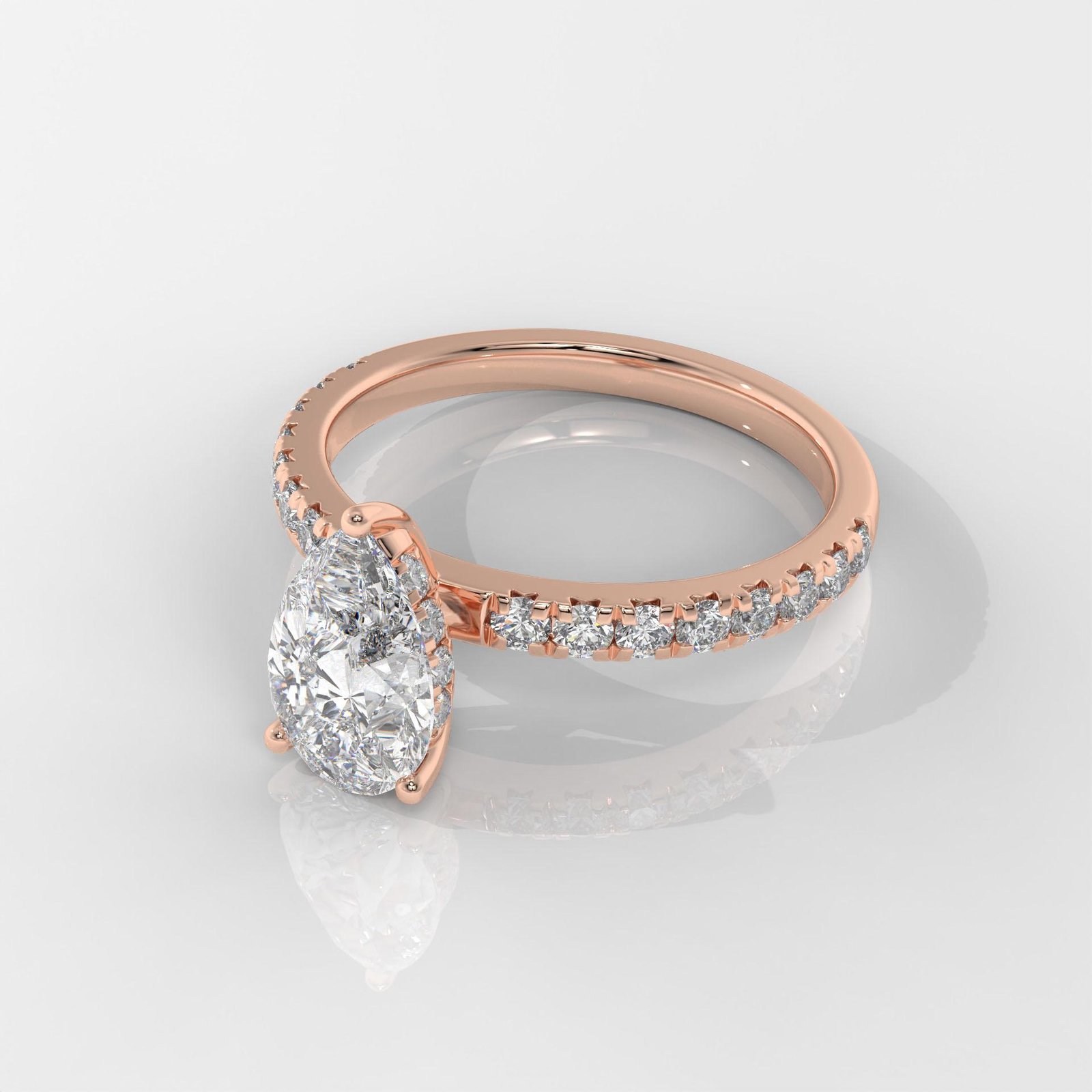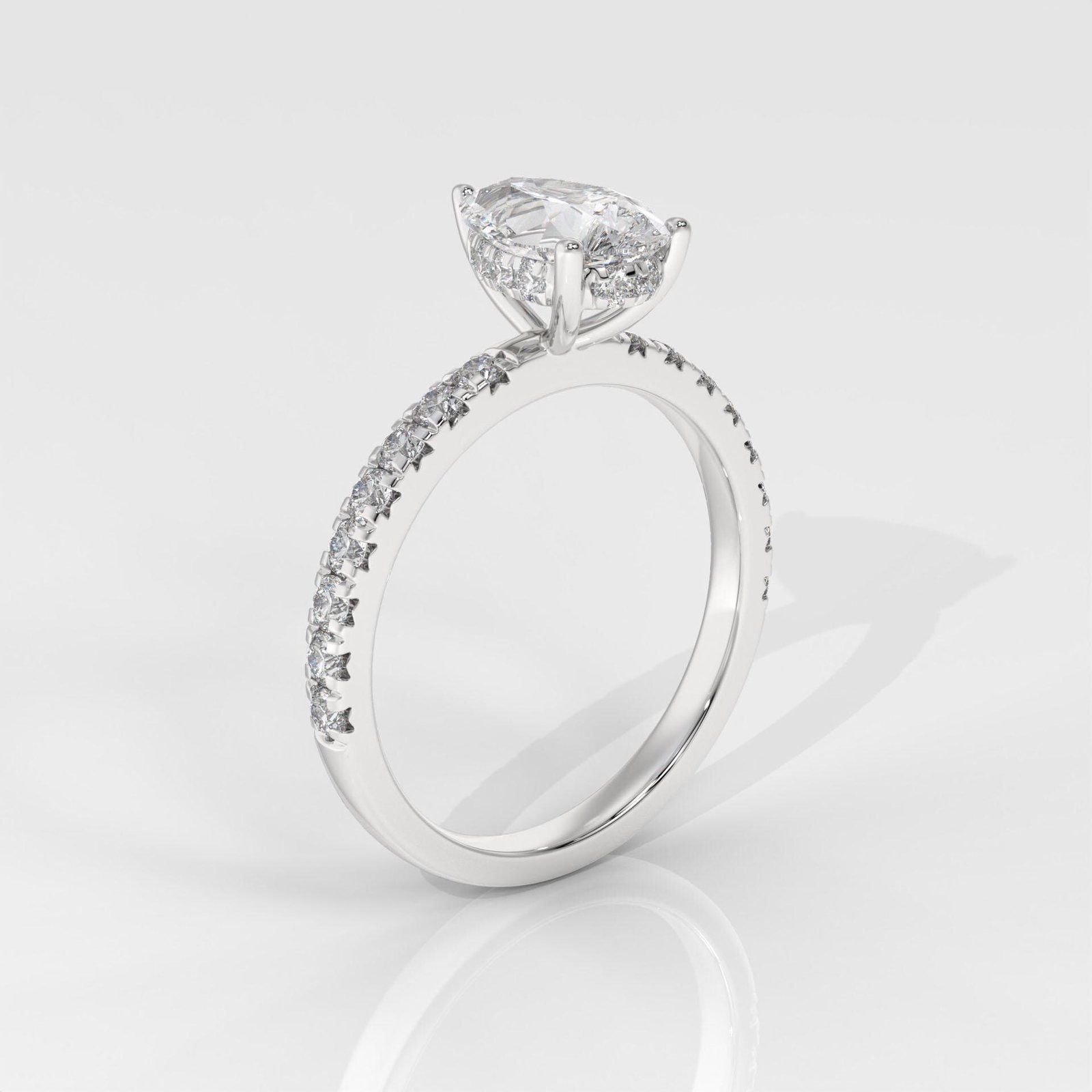 A graceful Pear-Shaped Diamond Ring by OTP Jewelry, featuring a certified lab-grown pear brilliant diamond with a sparkling pavé side stone band. Available in 14K White, Yellow, or Rose Gold.