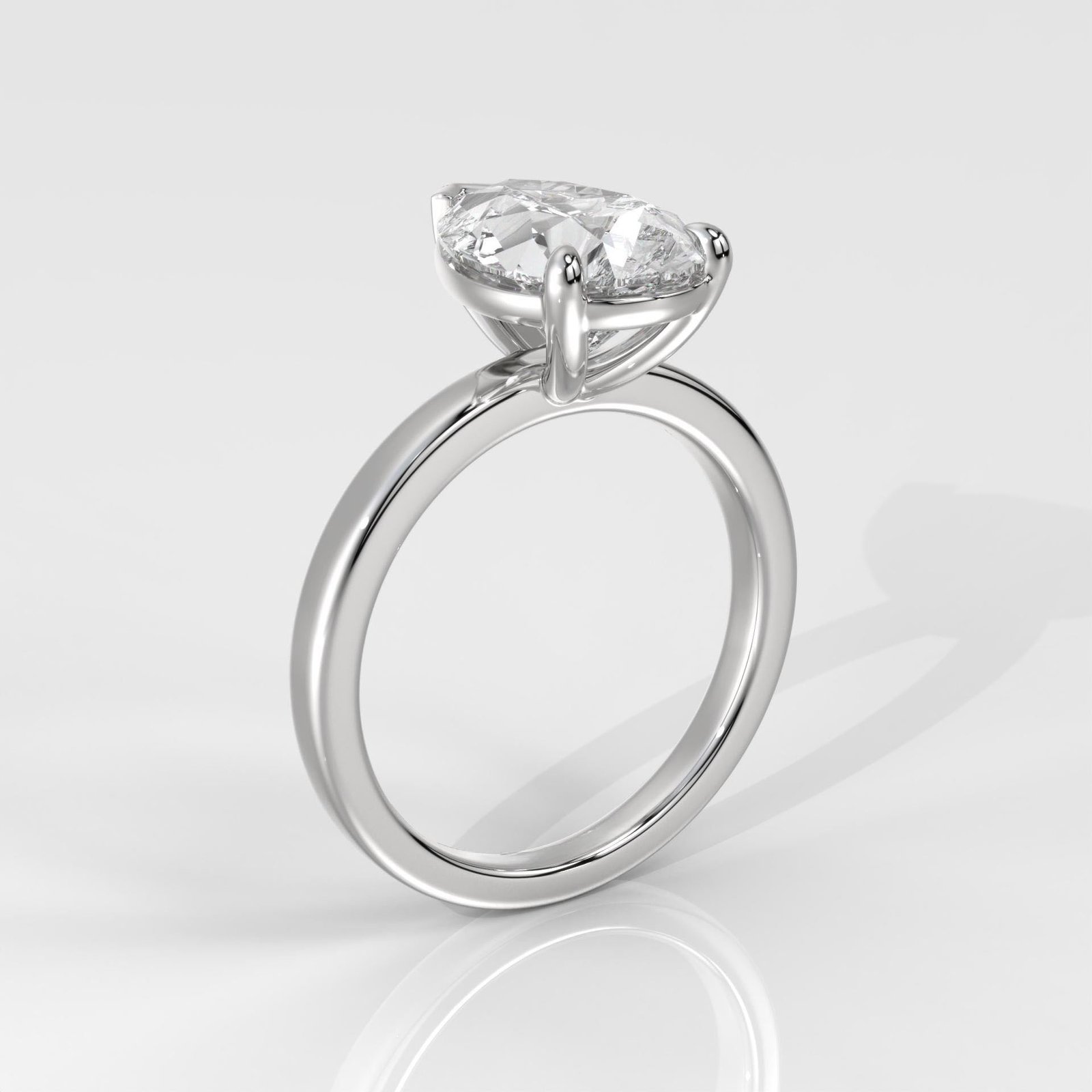 The pear-cut diamond combines the radiant sparkle of a round with the graceful silhouette of a marquise, creating a unique teardrop shape that symbolizes new beginnings and everlasting love. With its solitaire setting, this ring is a classic yet striking choice for proposals and cherished milestones.