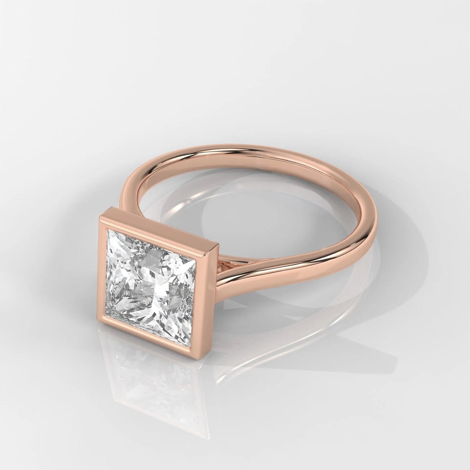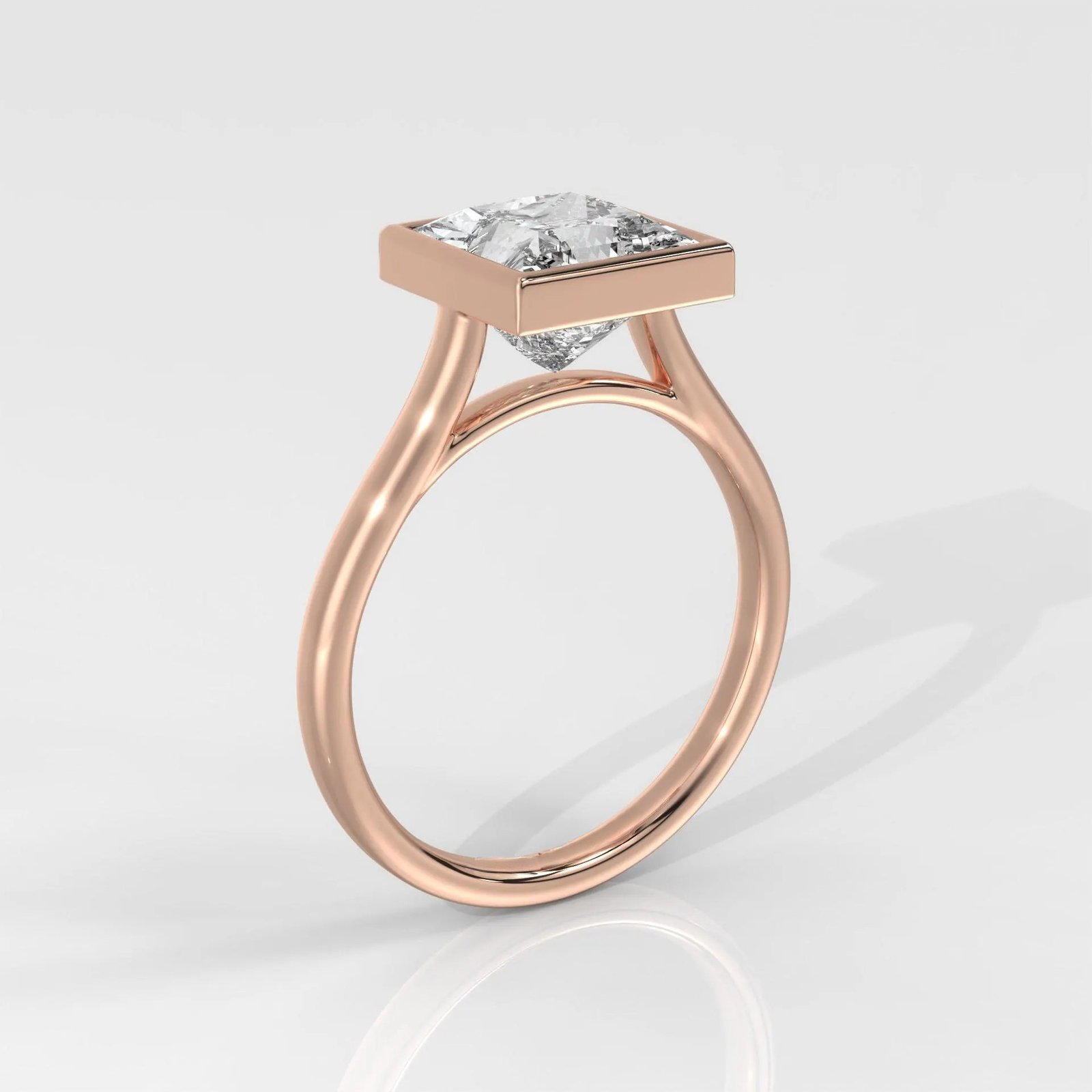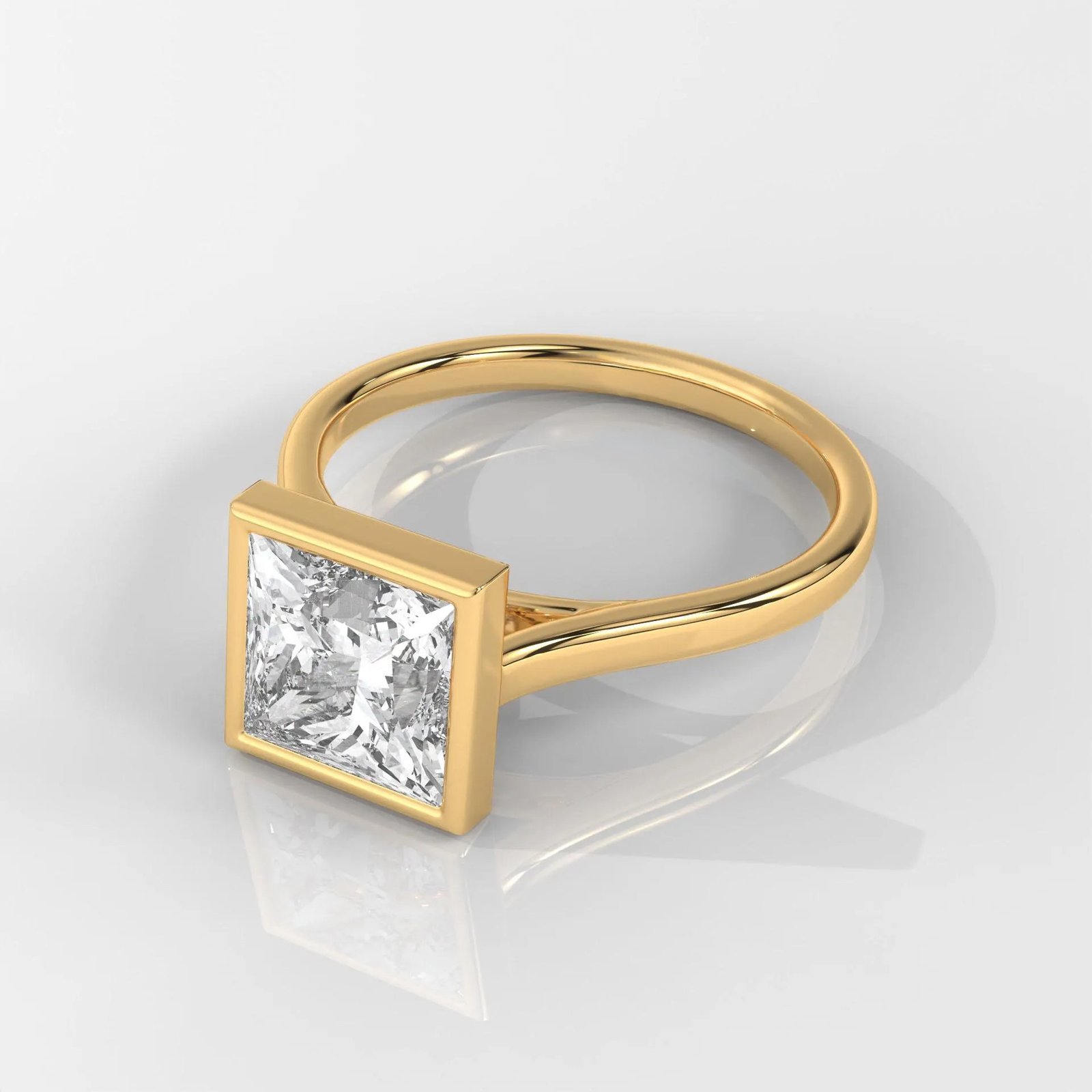 Modern 14K Gold Princess Cut Lab Grown Diamond Ring with a sleek bezel setting. IGI Certified, DEF color, VVS–VS clarity. A minimalist and elegant engagement or promise ring
