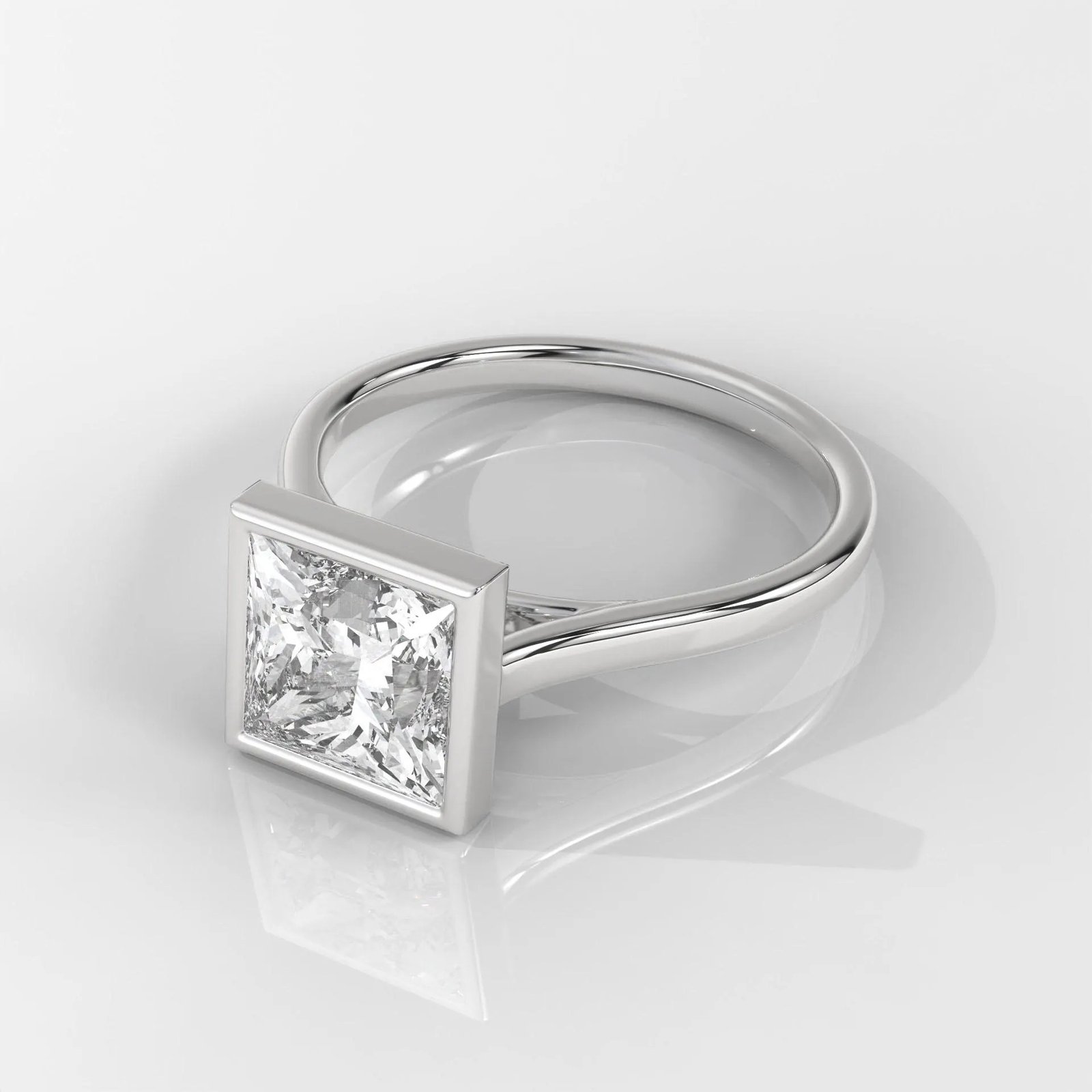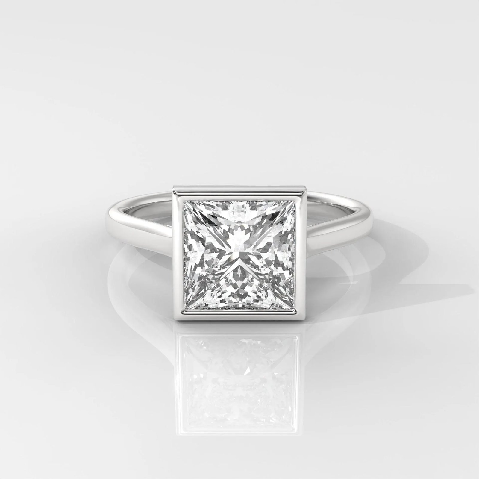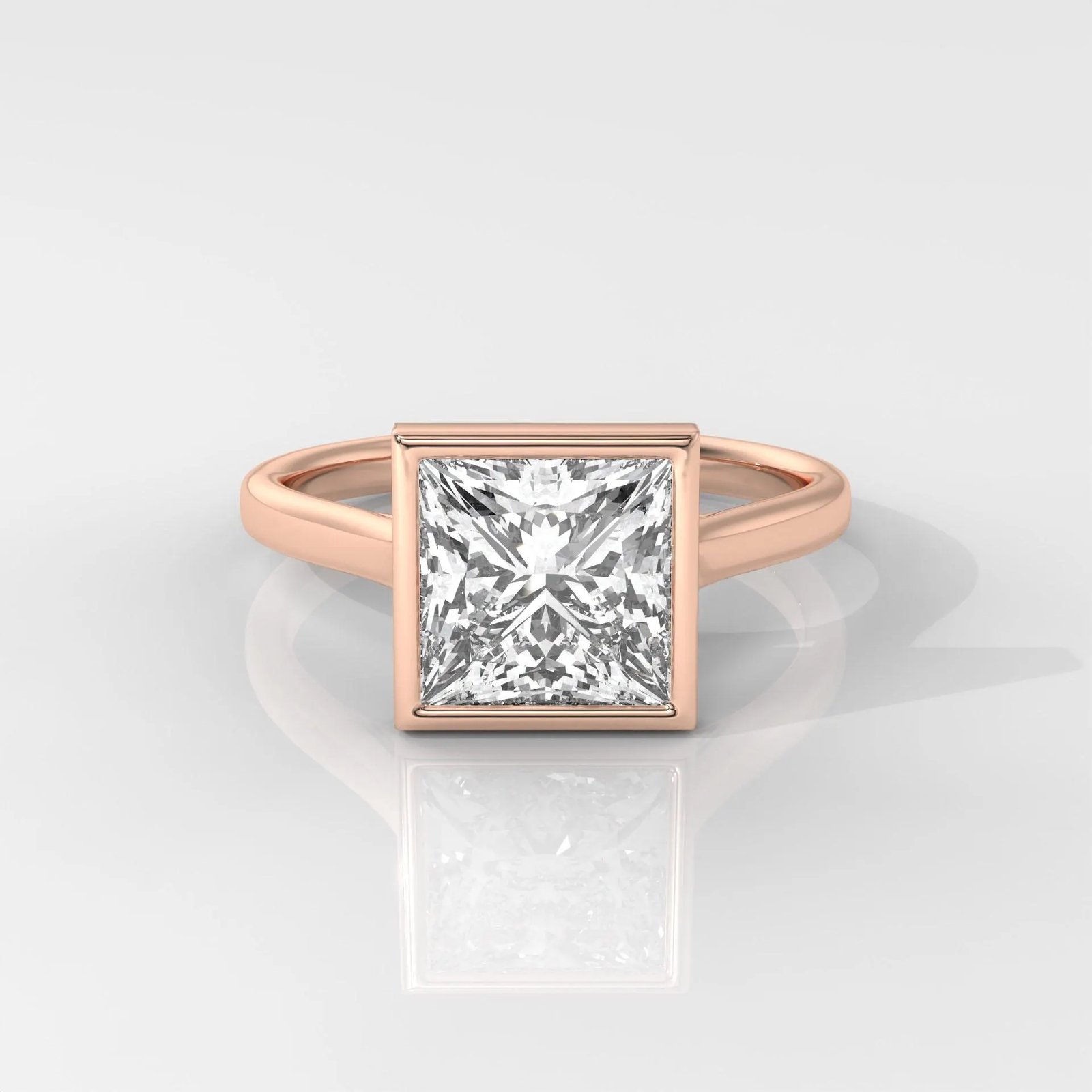 Modern 14K Gold Princess Cut Lab Grown Diamond Ring with a sleek bezel setting. IGI Certified, DEF color, VVS–VS clarity. A minimalist and elegant engagement or promise ring