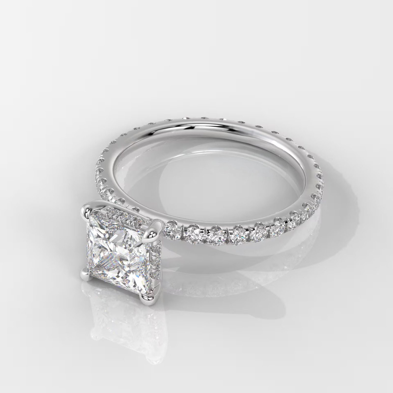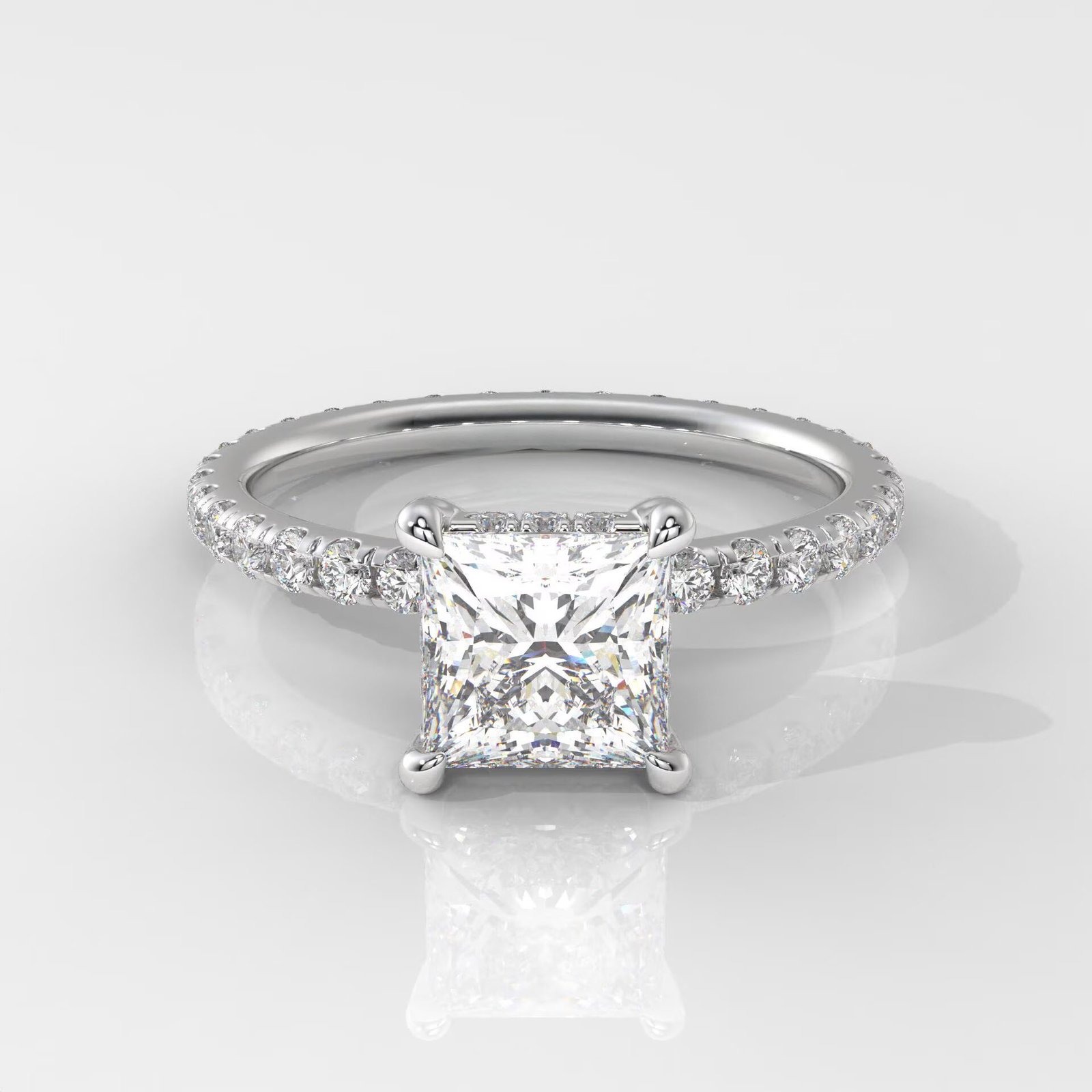 Timeless elegance meets modern design with this stunning Princess Cut Hidden Halo Lab Grown Diamond Engagement Ring. Featuring a bold, clean-lined Princess Brilliant center stone, this ring is IGI certified for its superior quality and ethical sourcing.