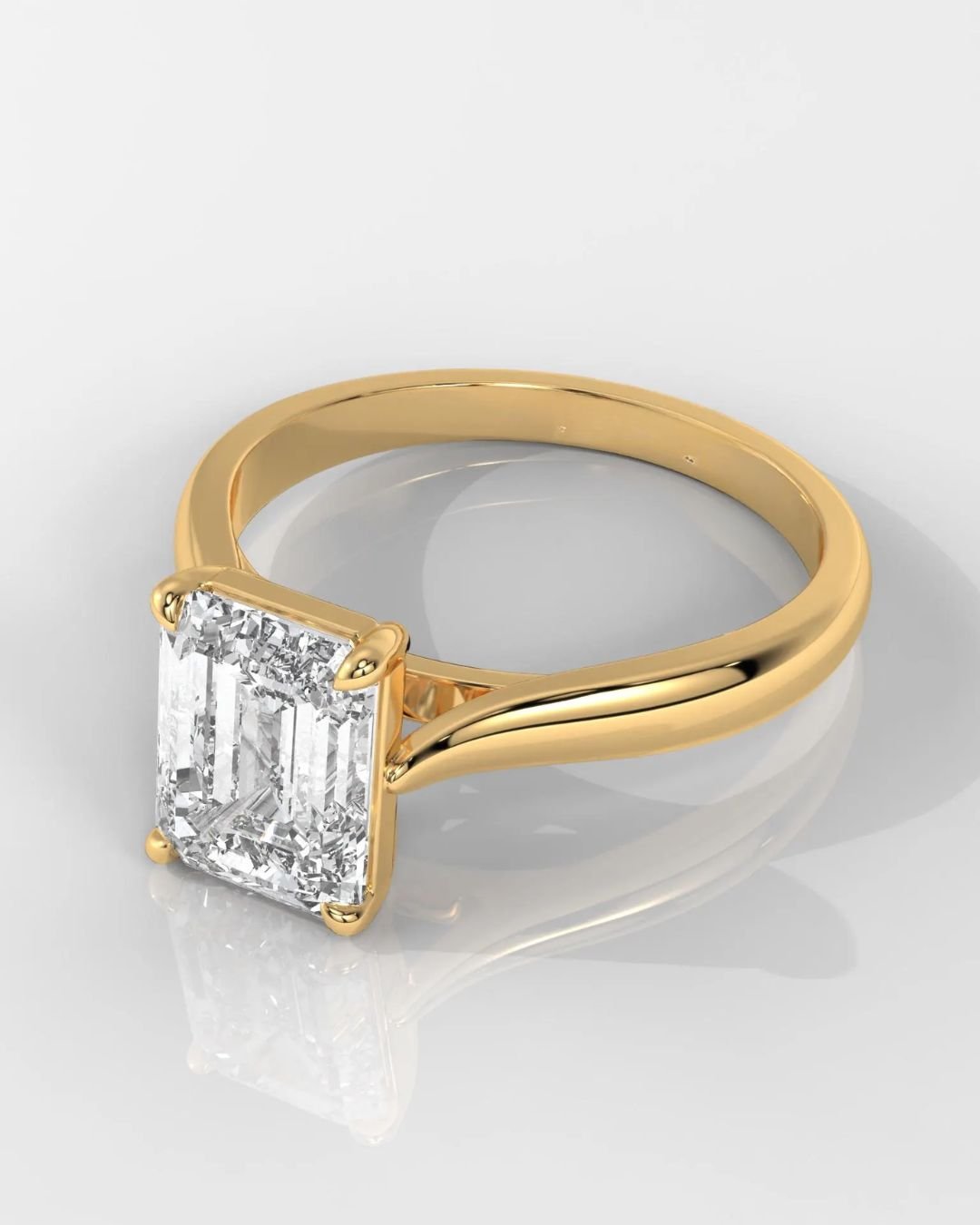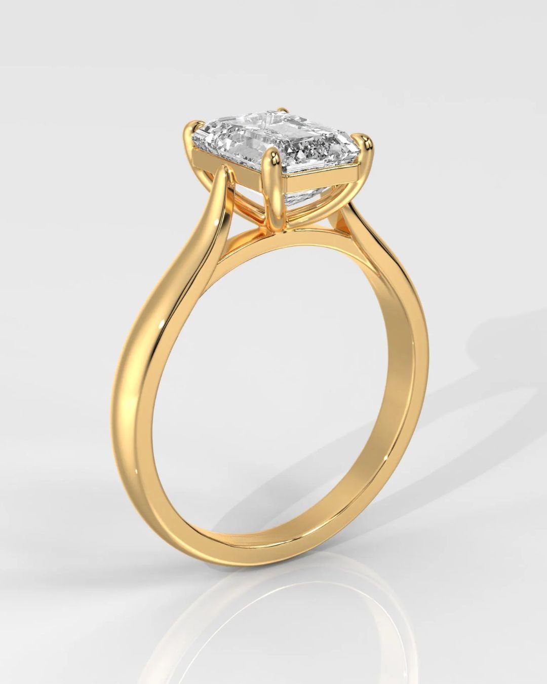 Introducing the Radiant Solitaire Lab Grown Diamond Ring, expertly crafted in 14K solid gold and designed to highlight the brilliance of its centerpiece a Radiant Brilliant cut diamond. With its clean lines and modern silhouette, the radiant cut is perfect for those who love a bold yet refined style.