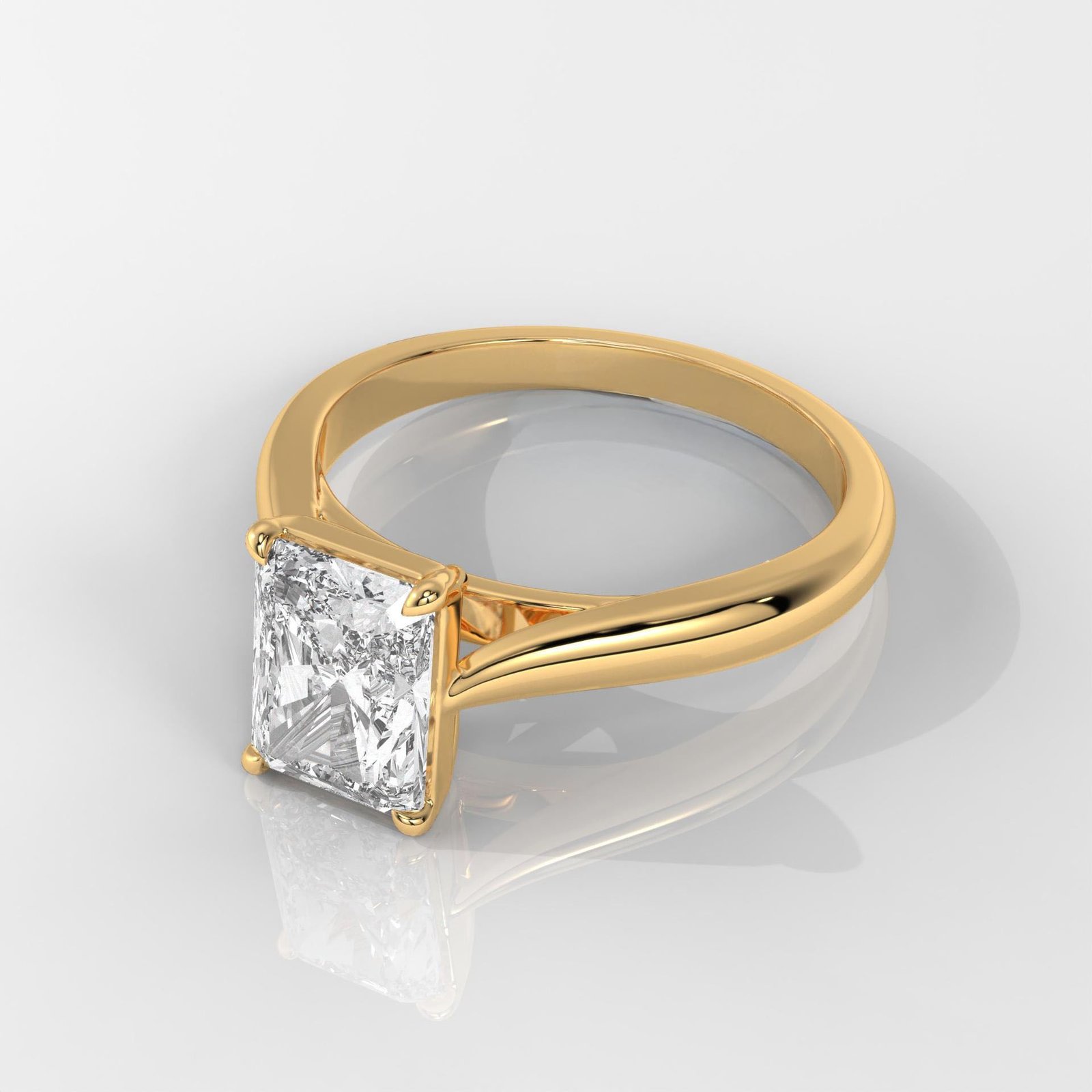 Modern elegance meets classic brilliance in this 14K Gold Radiant Brilliant Solitaire Engagement Ring. At its heart lies a stunning Radiant Cut Lab Grown Diamond, IGI certified to ensure top-tier quality, ethics, and exceptional sparkle.