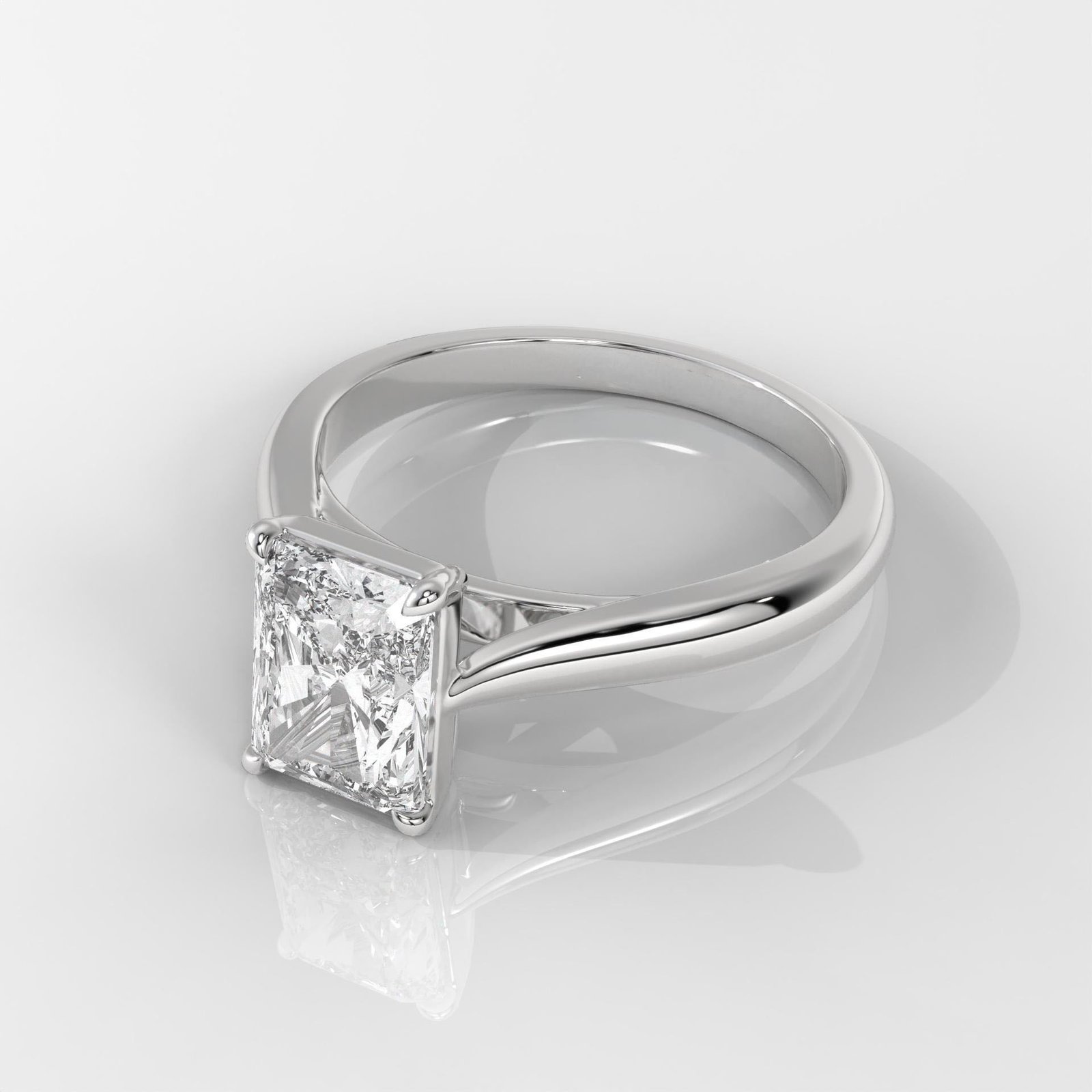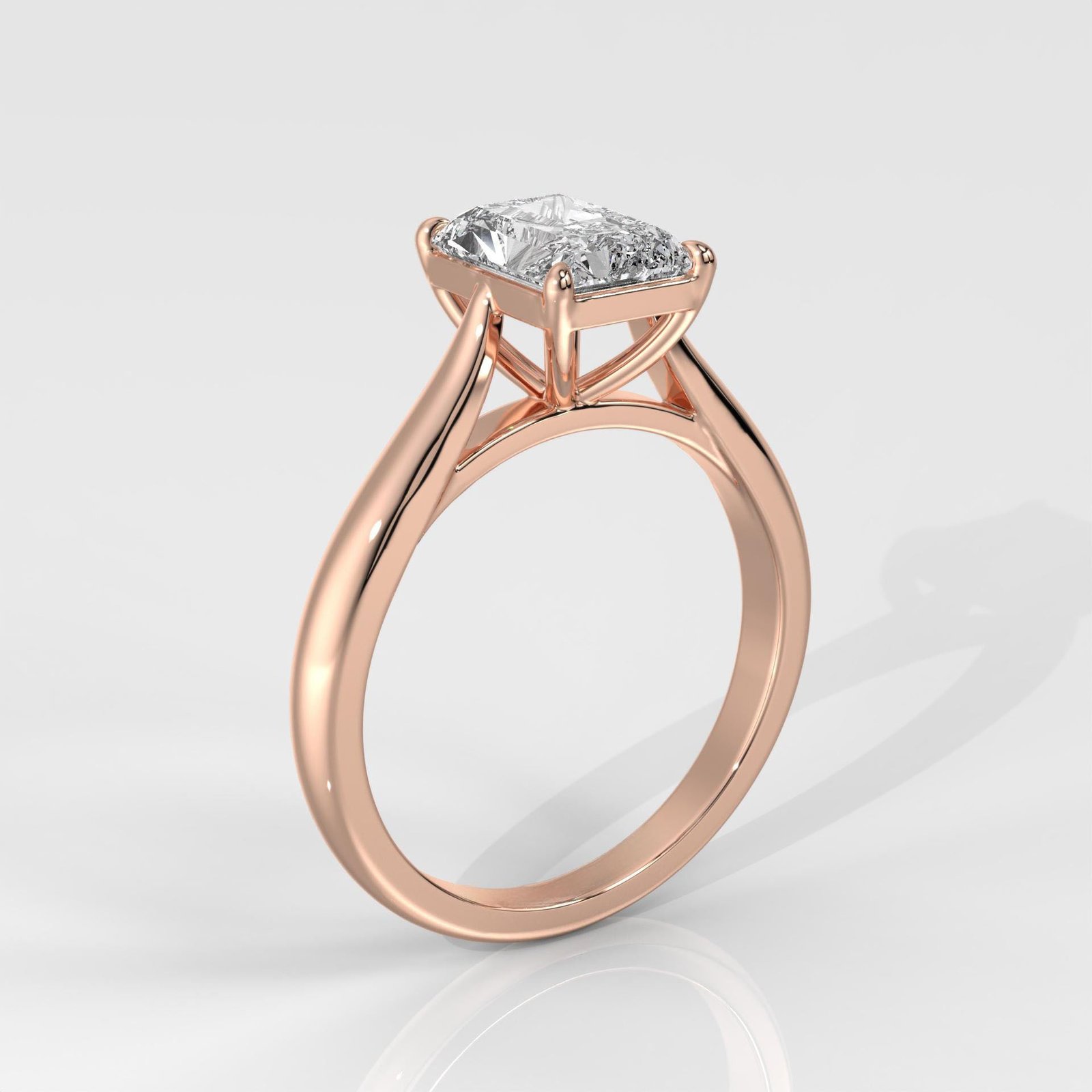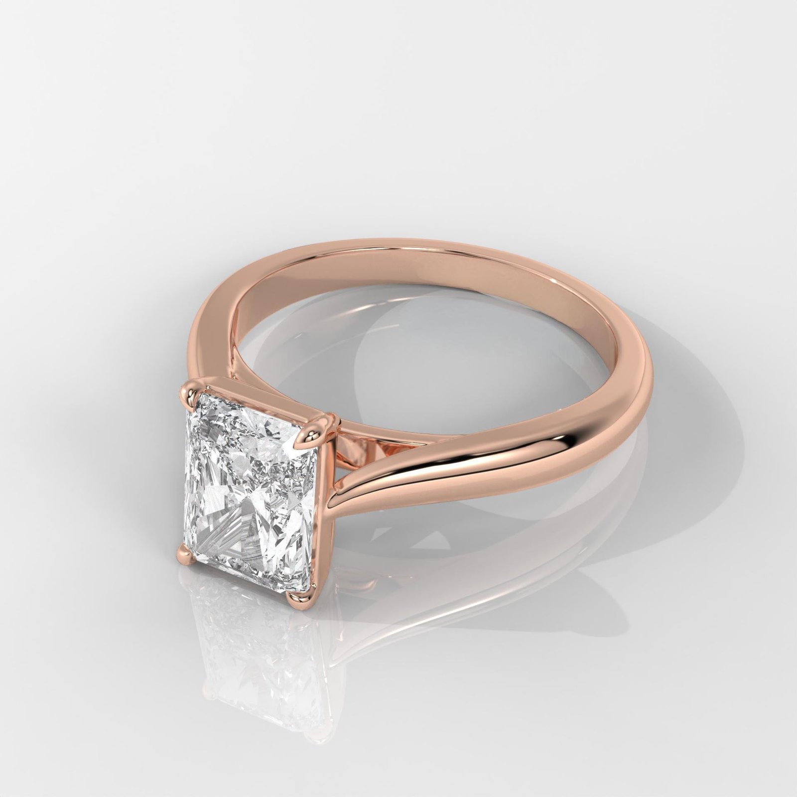 The solitaire setting highlights the unique rectangular facets and fiery brilliance of the Radiant cut, making it a sophisticated choice for those who appreciate clean lines and maximum shine. Available in a variety of carat sizes, every diamond used is of DEF color and VVS–VS clarity, promising a flawless appearance and sustainable origin.