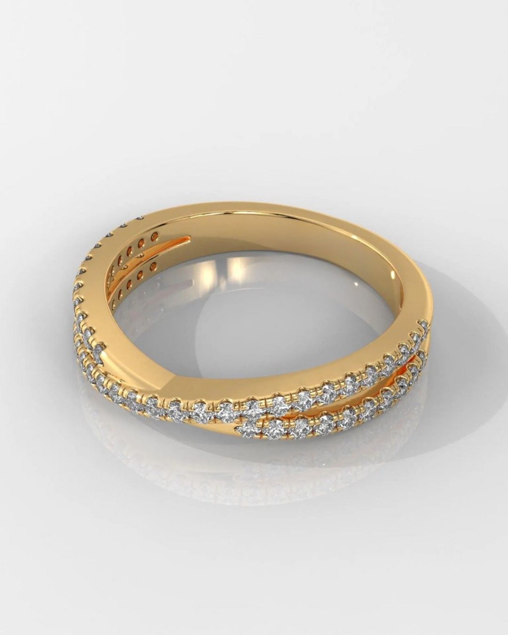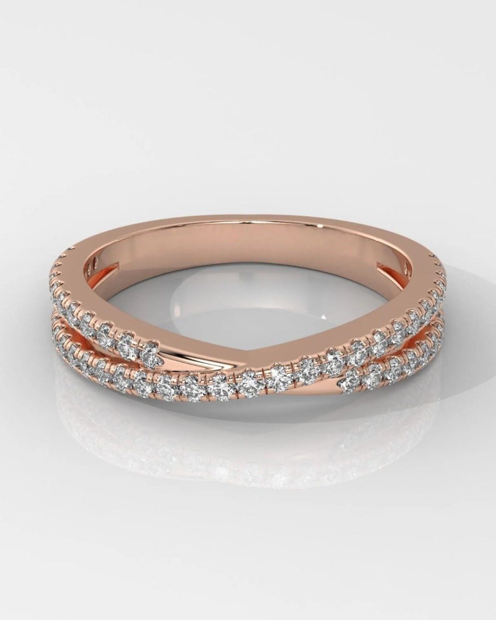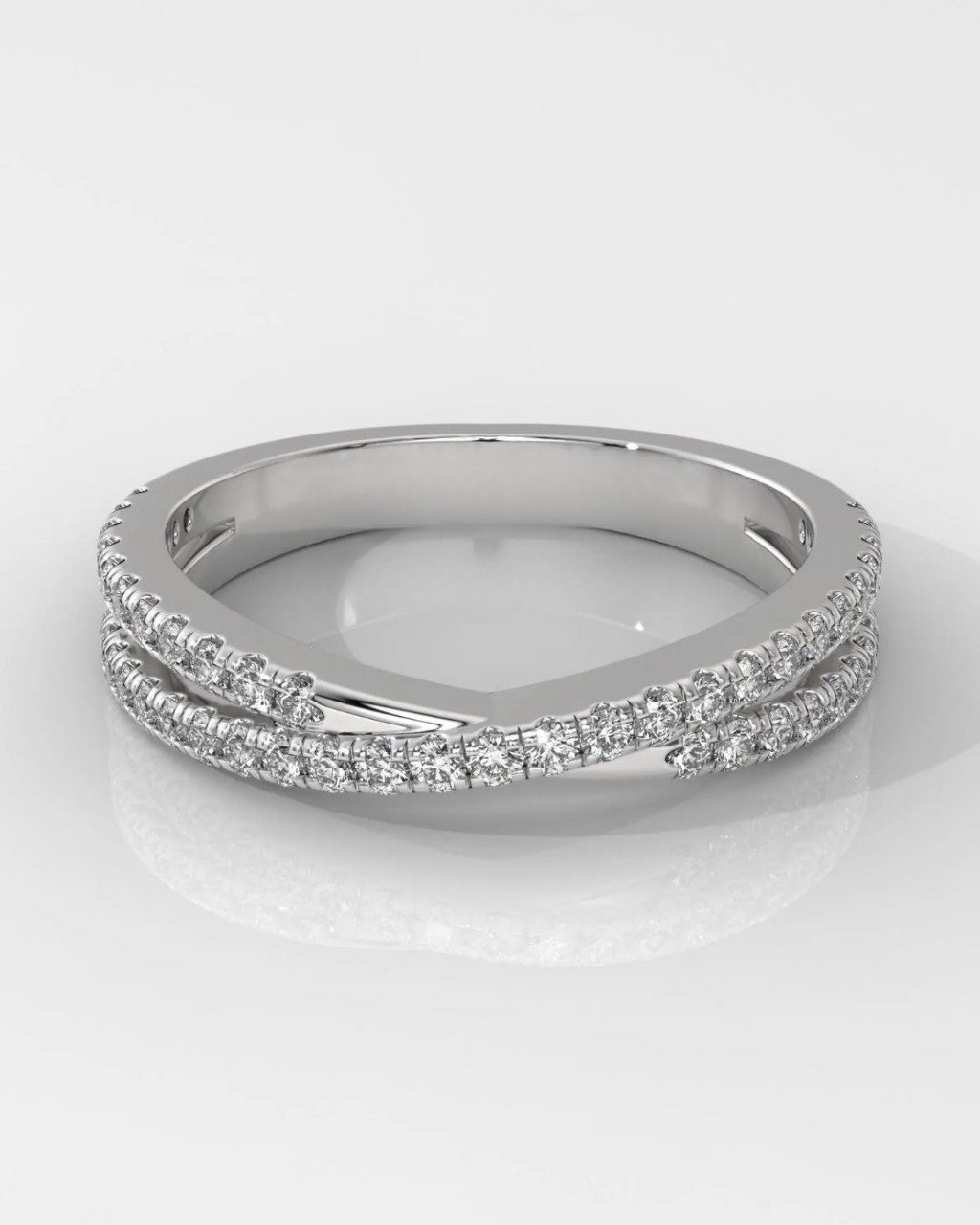 Elegant and modern, this Criss Cross wedding band features lab-grown Round Brilliant diamonds in a stylish eternity setting. Crafted in 14K solid gold and available in yellow, white, or rose, it’s the perfect choice for weddings, anniversaries, or stacking. Customizable and made to order.