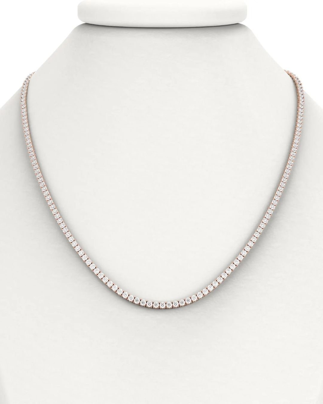 Stunning 10 CT Round Brilliant Lab Grown Diamond Tennis Necklace in solid 14K Gold. Available in Rose, White, or Yellow Gold. DEF color, VVS–VS clarity. Made to order & fully customizable.