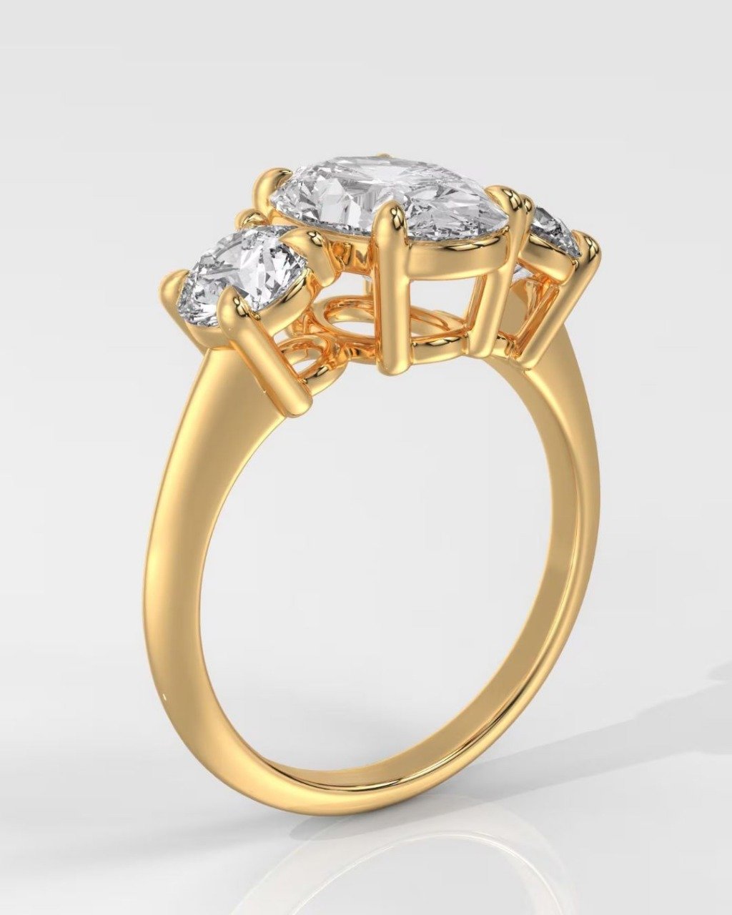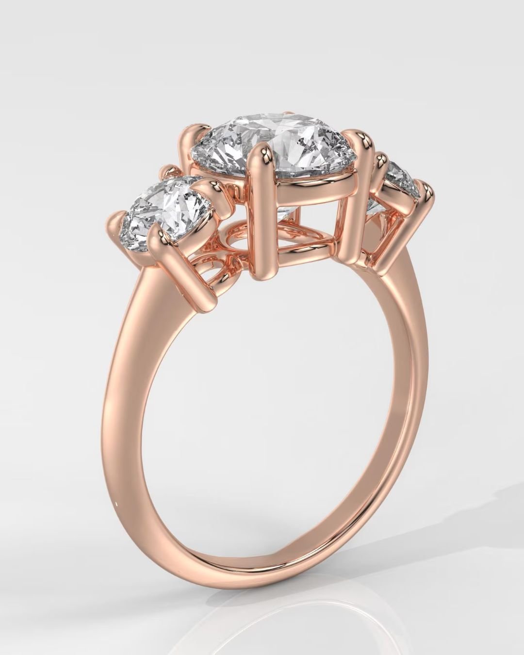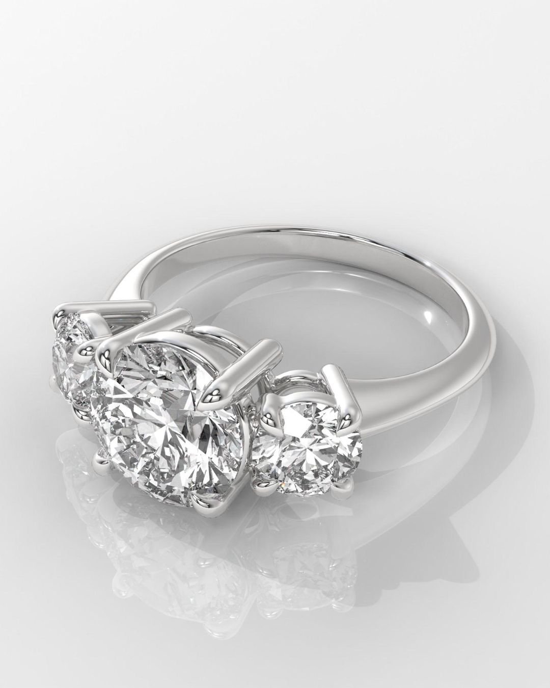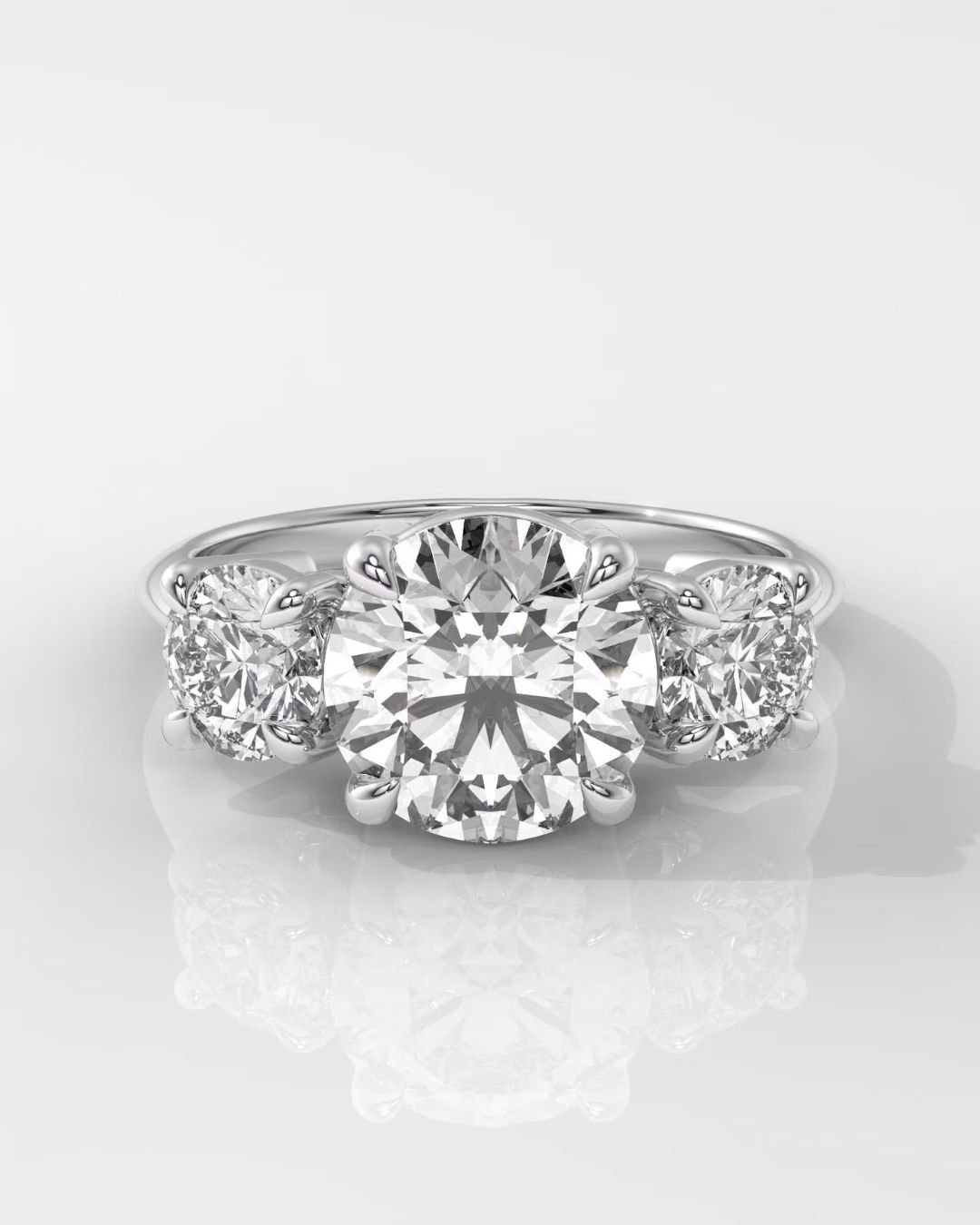 Celebrate your past, present, and future with this exquisite Round Brilliant Three-Stone Lab Grown Diamond Engagement Ring. Set in luxurious 14K gold, this ring features a stunning IGI-certified Round Brilliant lab-grown diamond at the center, available in carat weights ranging from 1.0 to 3.5 carats. Flanked by two Round Brilliant side stones, each diamond is hand-selected for its superior DEF color and VVS–VS clarity, ensuring exceptional sparkle and symmetry. The three-stone design represents enduring love, while the lab-grown diamonds offer a sustainable and ethical choice without compromising beauty or brilliance.