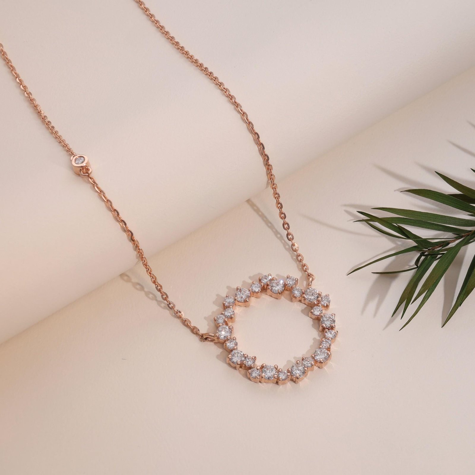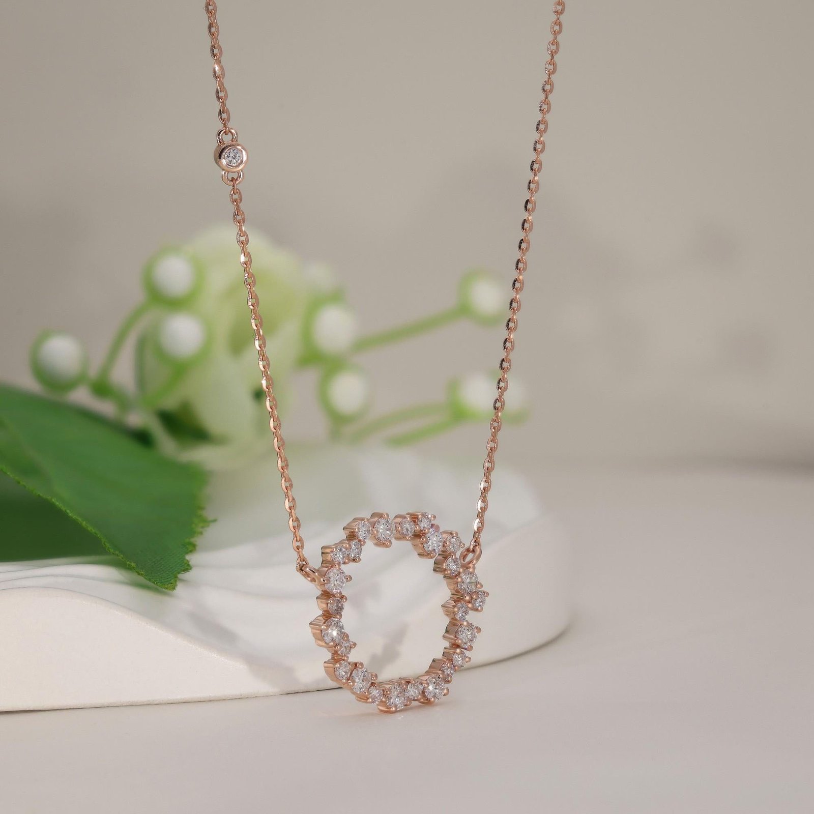 Crafted in solid 14K rose gold, the soft, romantic tone of the metal perfectly complements the brilliance of the diamonds. The 18-inch chain makes it ideal for layering or wearing alone, and the length can be customized to your preference.