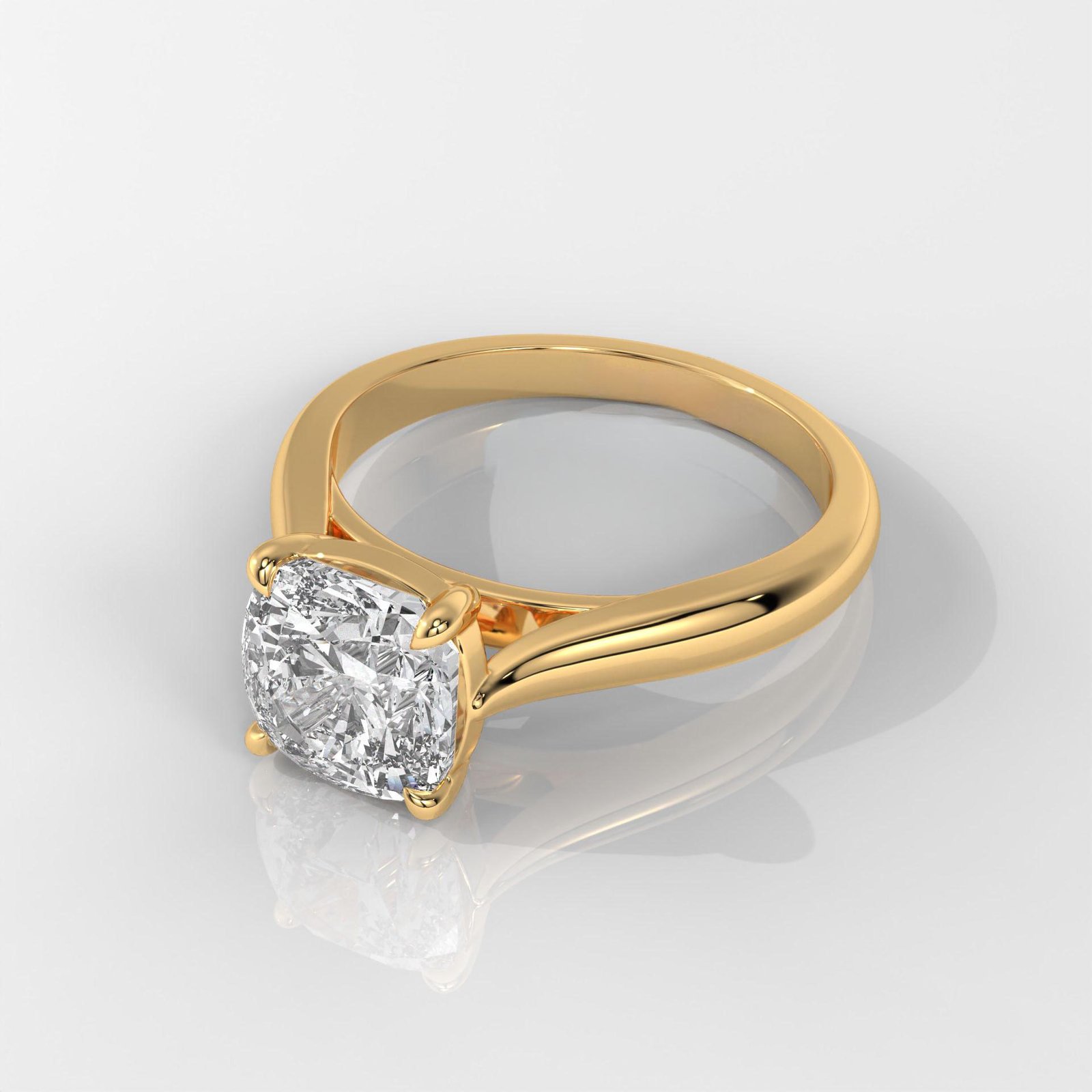 A classic Cushion-Cut Diamond Solitaire Ring by OTP Jewelry, featuring a certified lab-grown cushion brilliant diamond in yellow gold. Elegant, timeless, and made to order in multiple carat sizes.